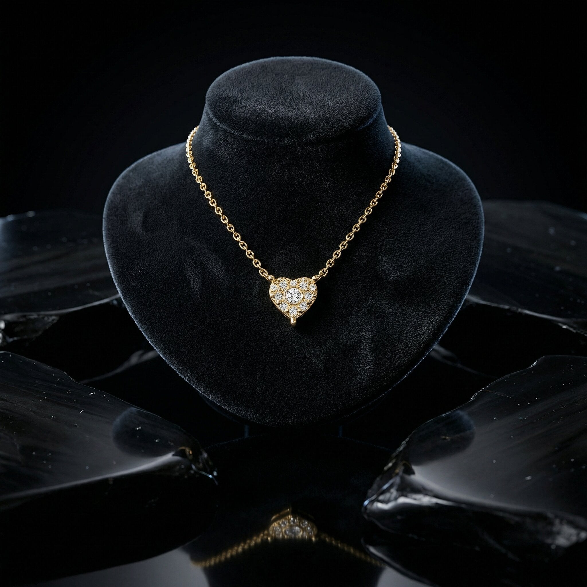 Diamond Heart Cluster 14K (or 18k upon request) Gold Pendant Necklace