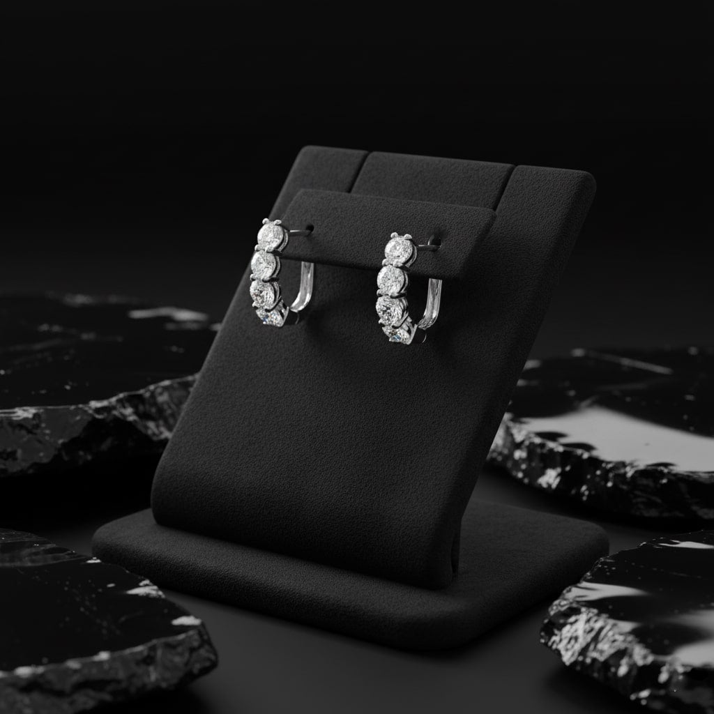 These stunning Four Prong Lever Back 18K White Gold Diamond Earrings are the perfect combination of elegance and timeless style. Crafted in 18k gold, they feature brilliant round natural diamonds, adding a touch of sparkle to any outfit. Designed with comfort in mind, their secure lever-back setting ensures they stay in place all day.