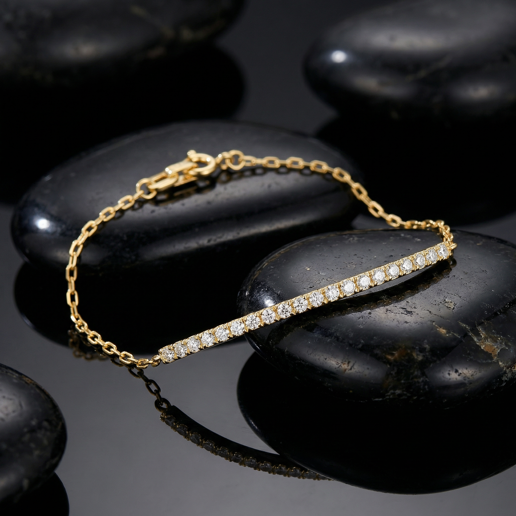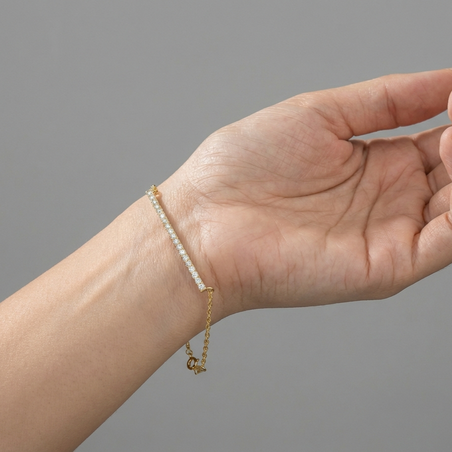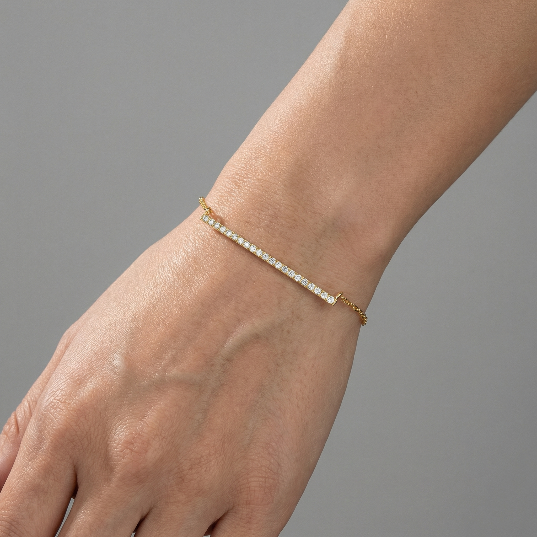 Round Cut Diamond 14K (or 18k upon request) Gold Bar Bracelet