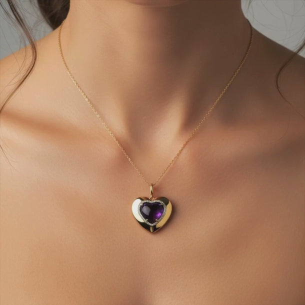 Celebrate love, light, and elegance with the Amethyst Heart Cabochon Pendant Necklace, a masterpiece of warmth and sophistication. Crafted in solid 14K yellow gold, this pendant features a rich, heart-shaped amethyst cabochon, radiating deep purple hues that symbolize peace and inner strength.