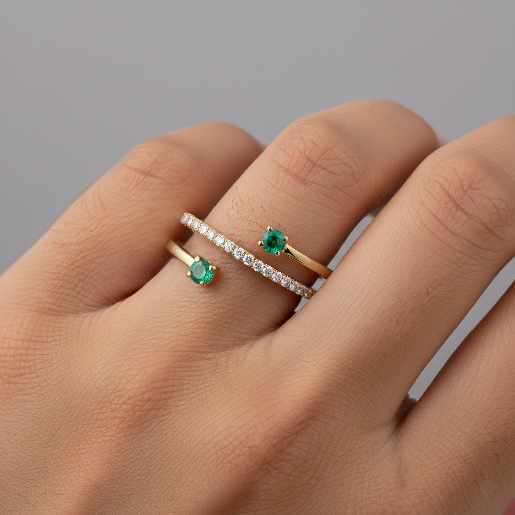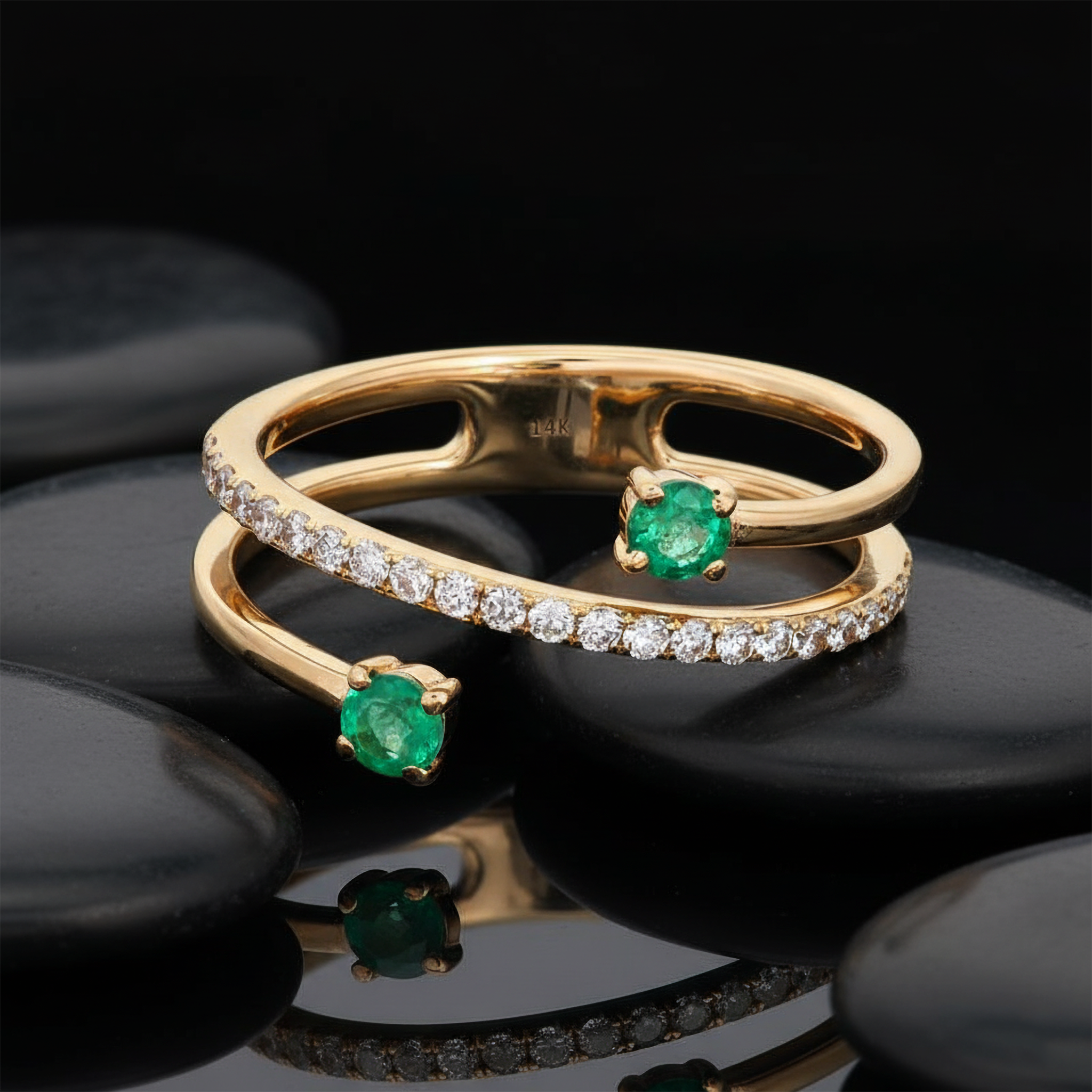 The Diamond 14K Yellow Gold Thin Stackable Eternity Ring is a true masterpiece of elegance and sophistication. Fashioned in luxurious 14K Yellow Gold, this exquisite ring showcases a captivating combination of natural diamonds and vibrant emeralds alongside delicate pink sapphires. Weighing 2.79GR, the unique open wrap design in size 7 offers a perfect blend of modernity and timeless beauty, making it a standout piece for any jewelry collection.