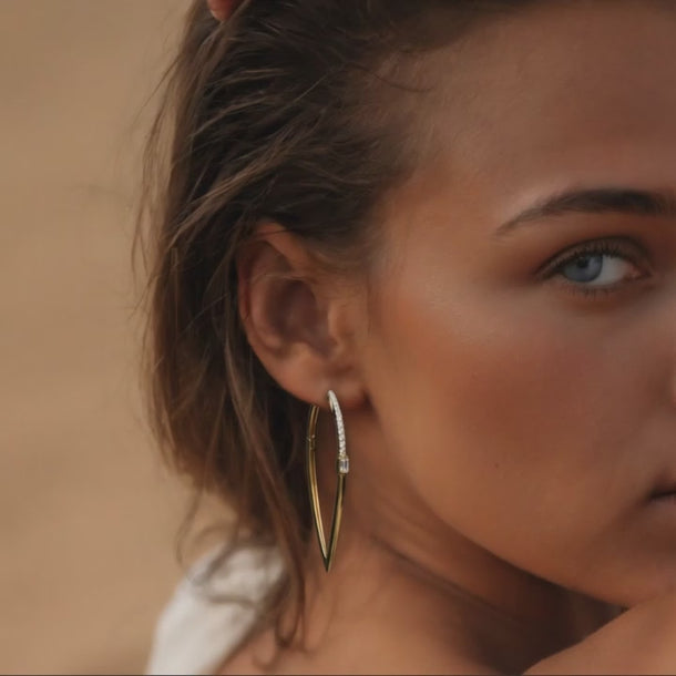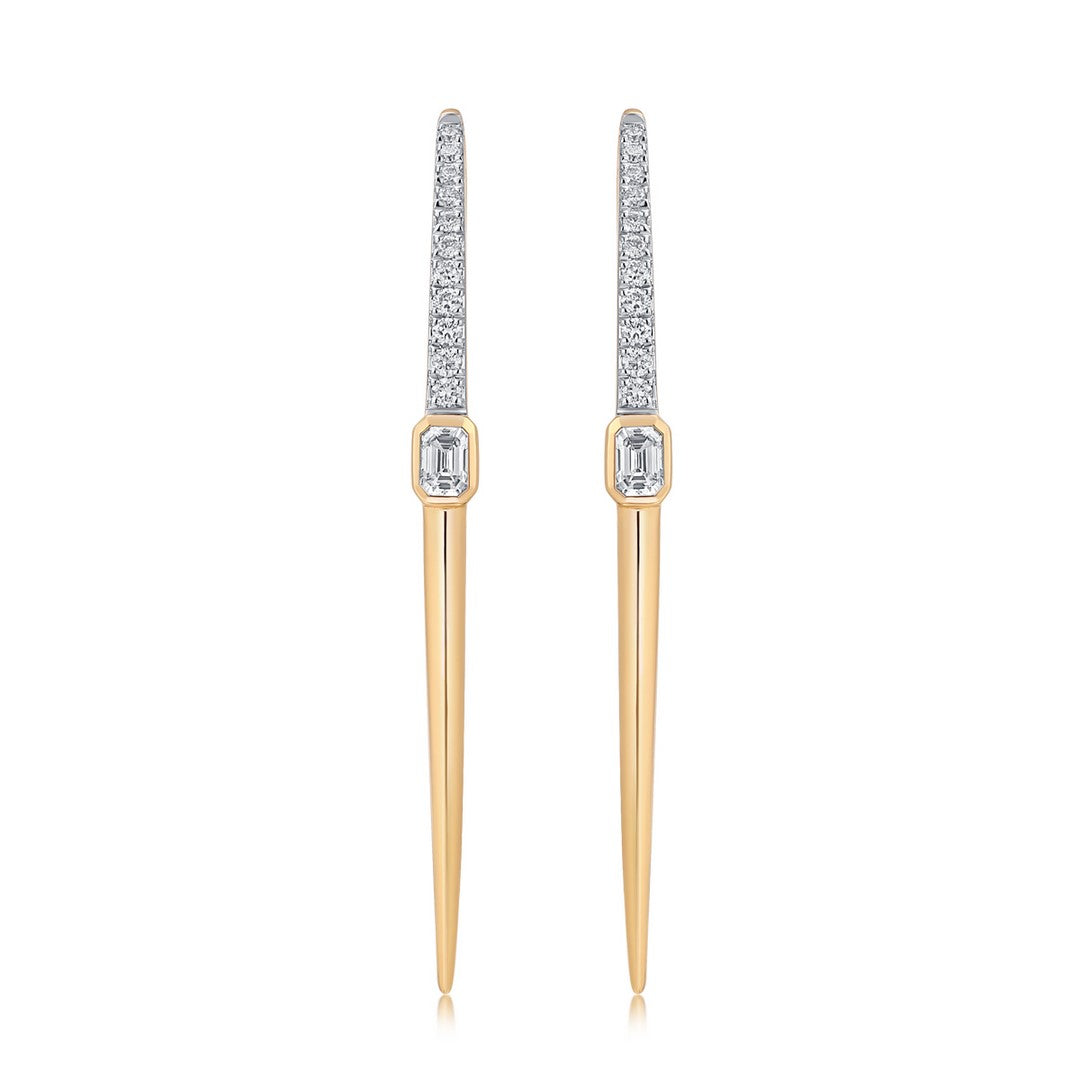 Emerald-Cut Diamond Spike 14K (or 18K upon request) Yellow Gold Hoop Earrings