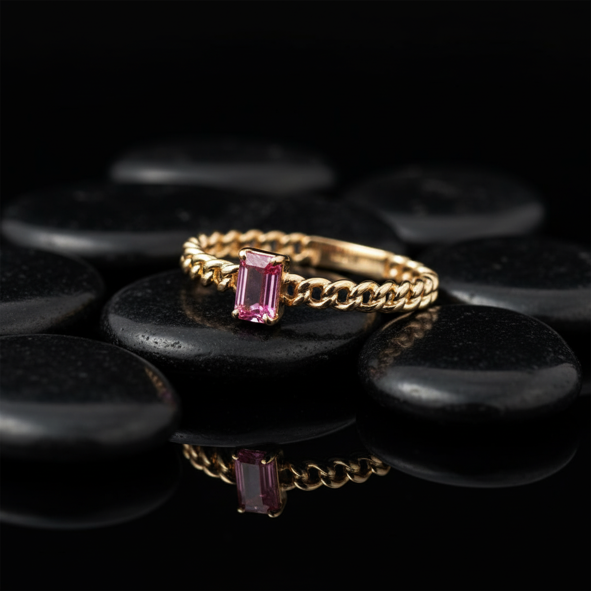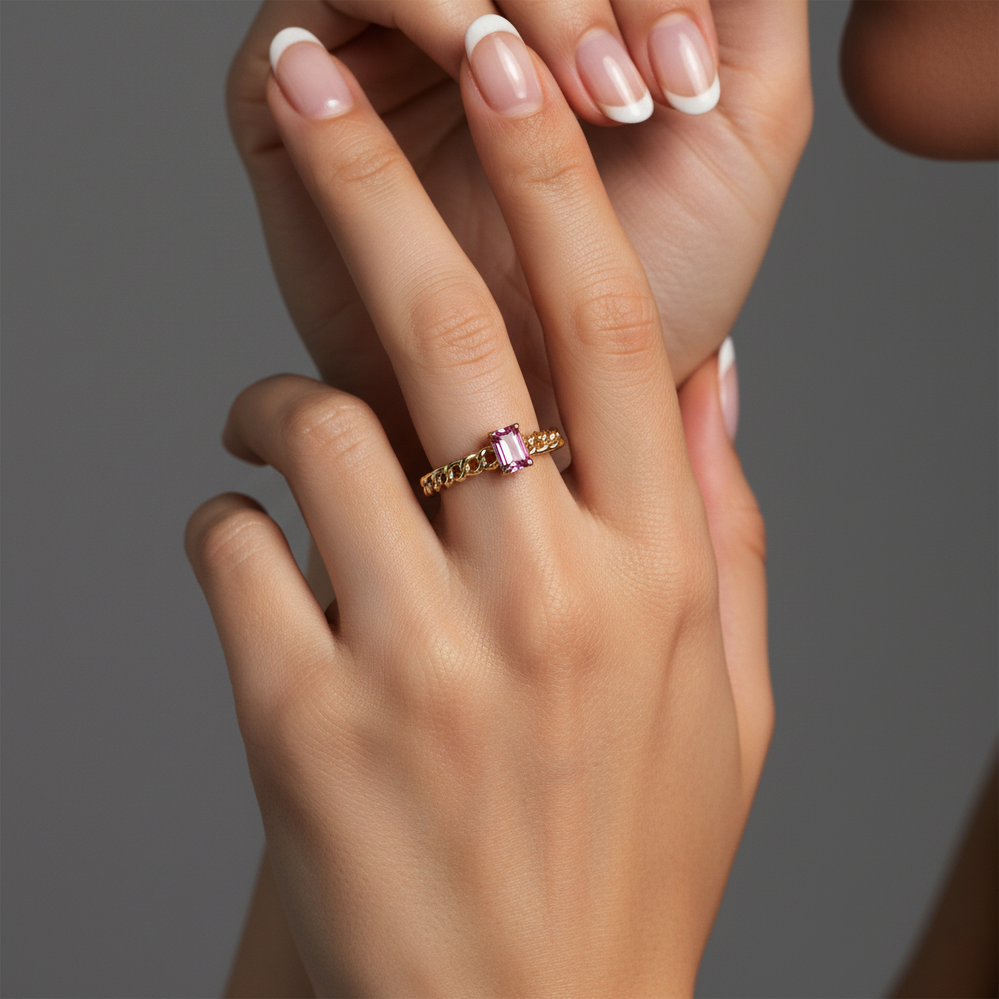 Chain Pink Sapphire 14K (or 18k upon request) Yellow Gold Ring