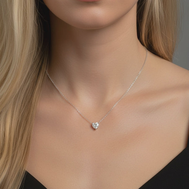 Celebrate timeless elegance with this stunning 1.75-carat heart-cut diamond pendant, beautifully suspended on a fine white gold chain. The expertly crafted heart-shaped brilliant cut captures light from every angle, creating an extraordinary sparkle that symbolizes love and devotion.