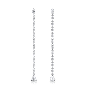 Elegant and timeless, The Marquis Long Earrings are designed to captivate with their exquisite craftsmanship. Featuring a stunning combination of pear and marquise diamonds set in 14k white gold, these earrings add a touch of luxury to any occasion.