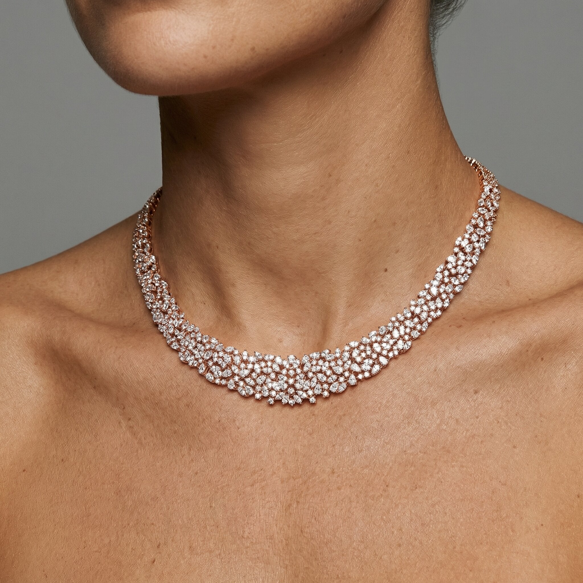 This exquisite 30 Carat Diamond 18K Gold Cluster Necklace, meticulously crafted in 18k gold. Featuring a stunning combination of round, pear, and marquise natural diamonds, this piece exudes elegance and timeless beauty. Available in white, rose, and yellow gold, it offers a perfect blend of luxury and sophistication for any occasion.