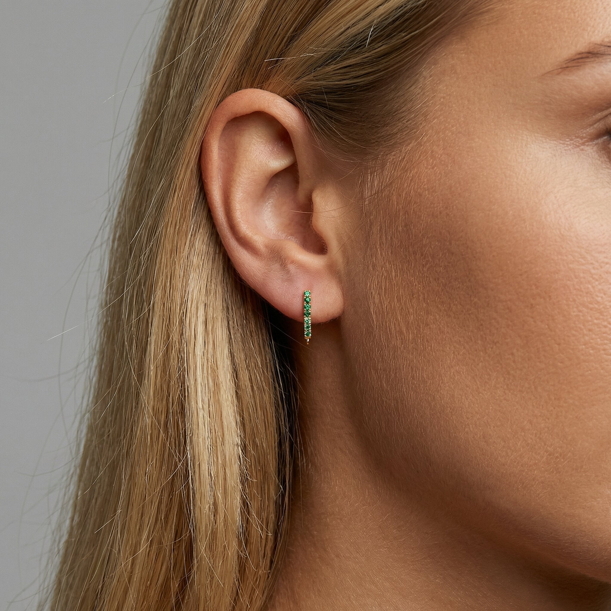 These stunning Emerald Hoop Findings 18K Yellow Gold Earrings are the perfect combination of elegance and timeless style. Crafted in 18k gold, they feature brilliant round natural diamonds, adding a touch of sparkle to any outfit. Designed with comfort in mind, their secure lever-back setting ensures they stay in place all day.