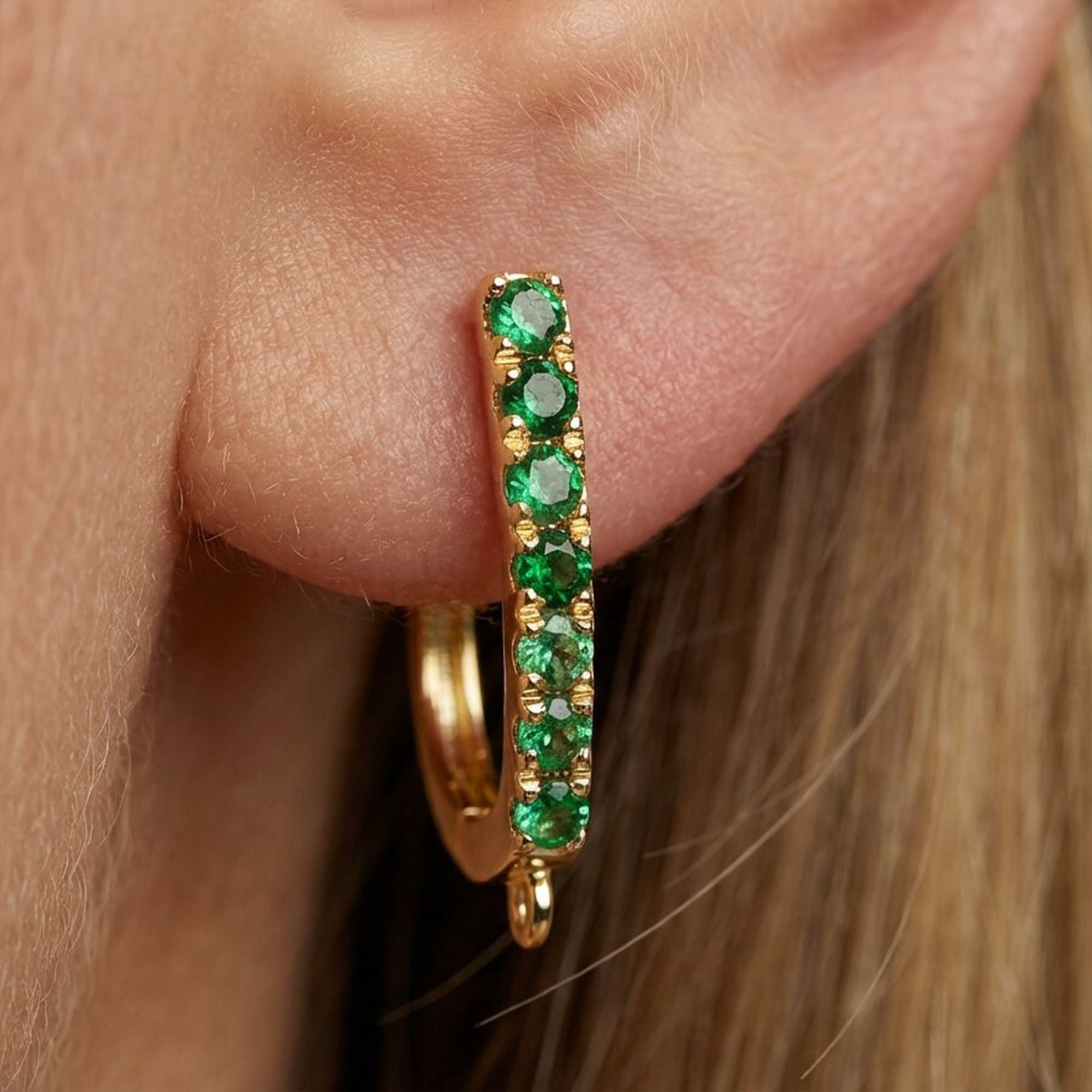 Emerald Hoop Findings 18K Yellow Gold Earrings