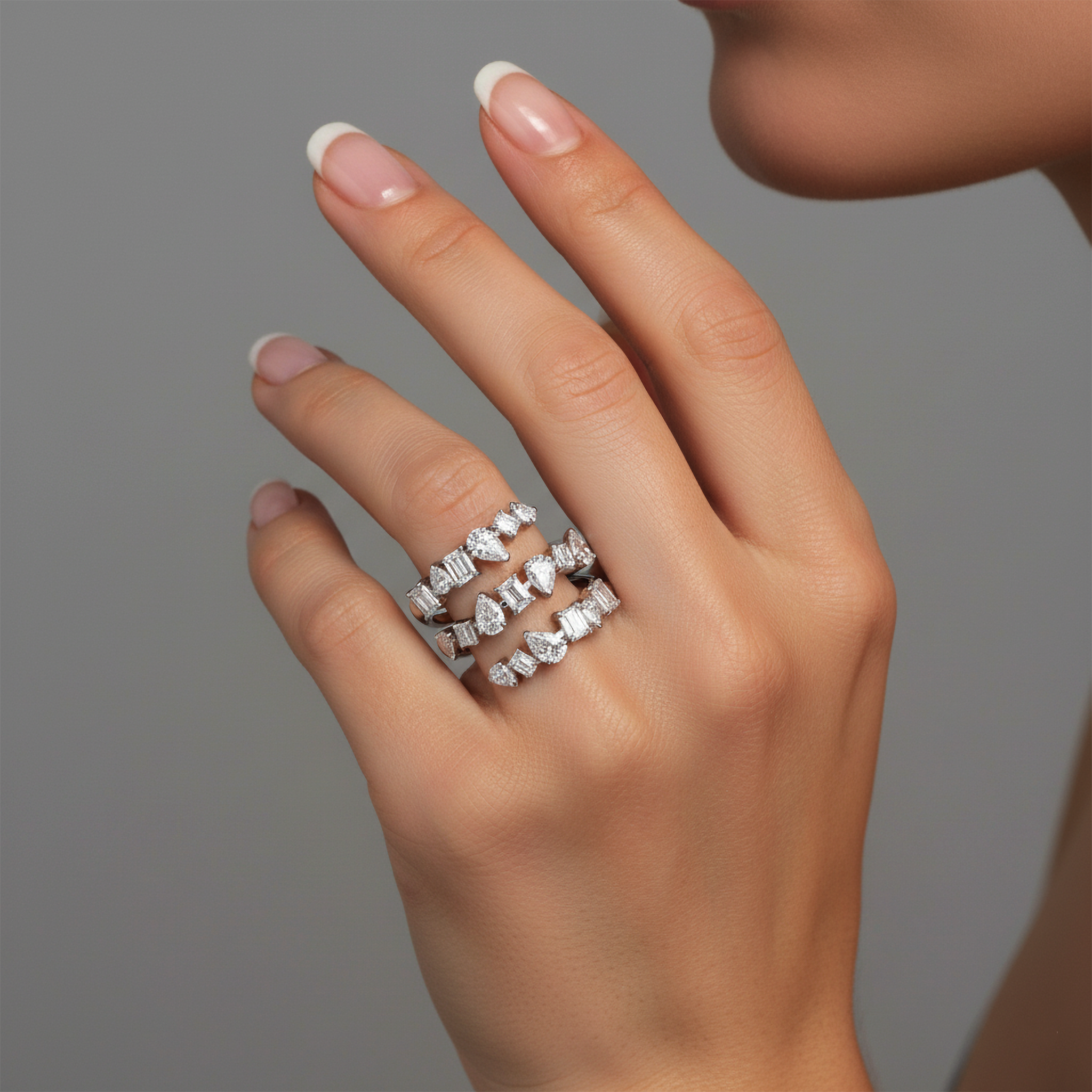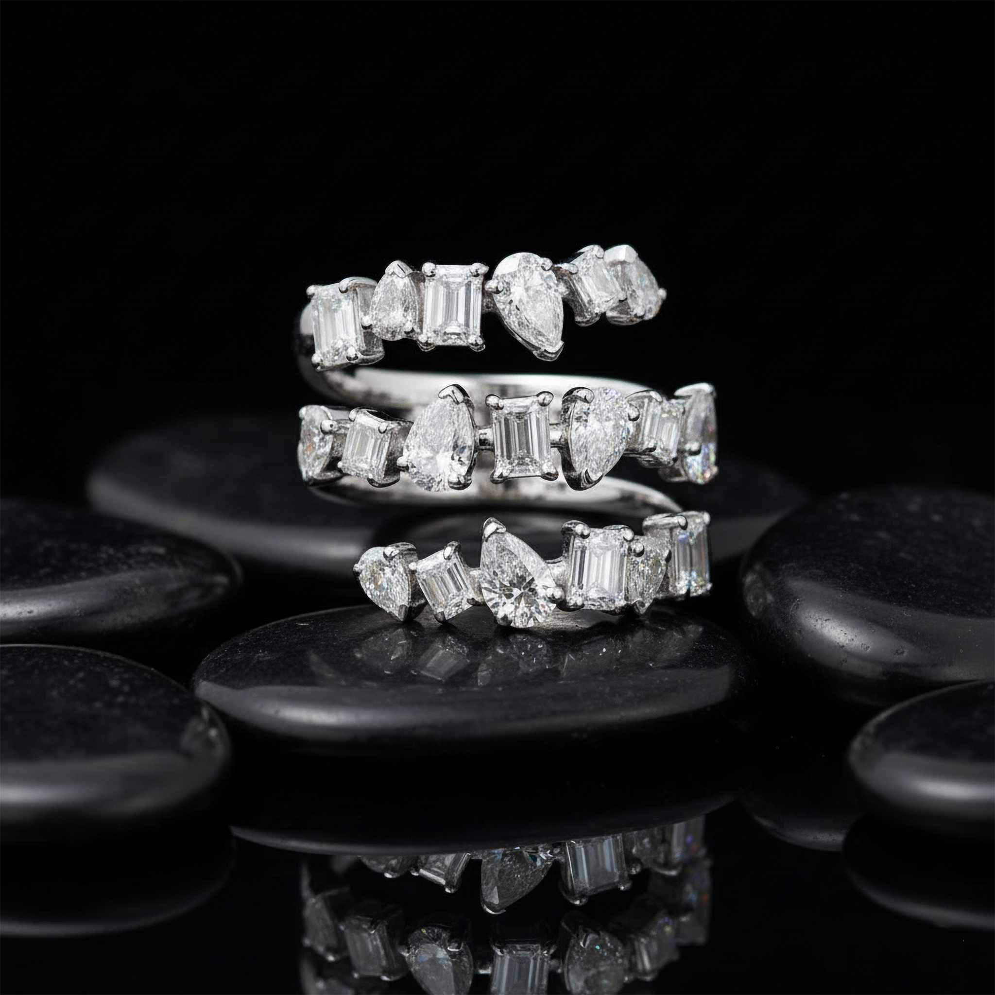 Exude sophistication with the Wrap Elegance 14K White Gold Mixed Cut Diamond Spiral Ring, meticulously crafted in your choice of 14K or 18K White Gold. This stunning piece features fancy natural diamonds totaling 2.53CT, radiating unmatched brilliance. The open wrap design adds a contemporary touch, perfectly blending boldness with timeless elegance. An exquisite statement piece for the modern jewelry connoisseur.