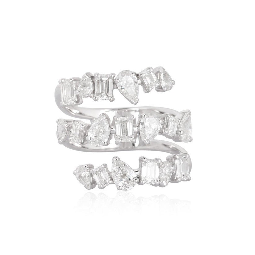 Wrap Elegance 14K (or 18k upon request) White Gold Mixed Cut Diamond Spiral Ring