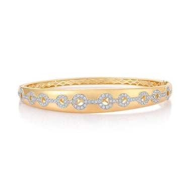 A luxurious piece crafted from 14K yellow gold, this bangle features natural diamonds that shimmer with elegance. Perfectly designed for sophistication and timeless appeal, it's a stunning addition to elevate any ensemble.