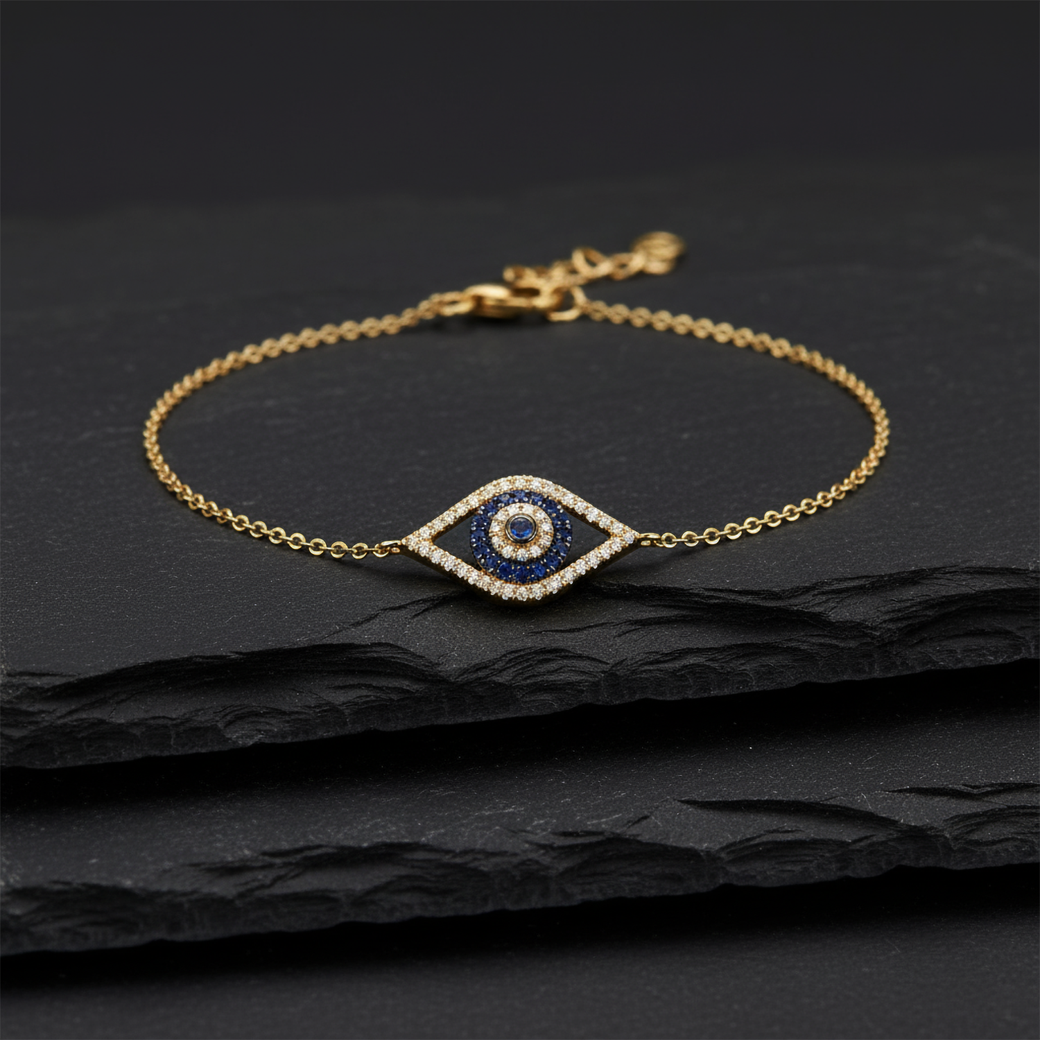 14K (or 18k upon request) Yellow Gold Sapphire Evil Eye Diamond Bracelet