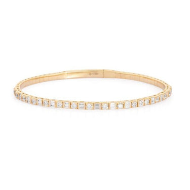 Alternating Round 14K (or 18k upon request) Yellow Gold Baguette Diamond Bangle Bracelet