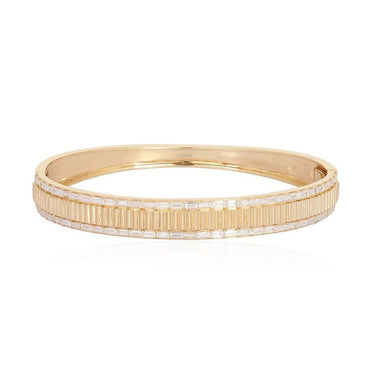 Baguette Round Diamond 14K (or 18k upon request) Gold Layered Bangle Bracelet