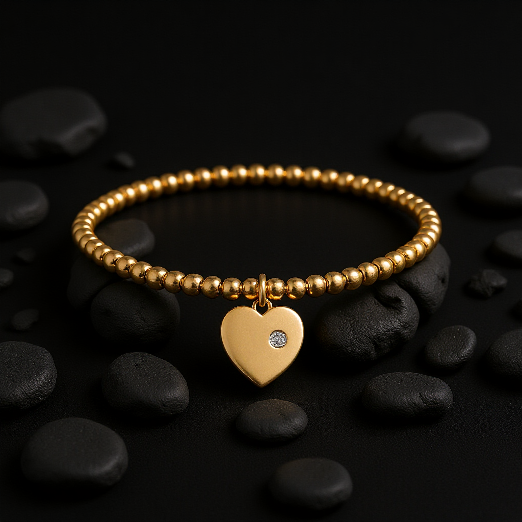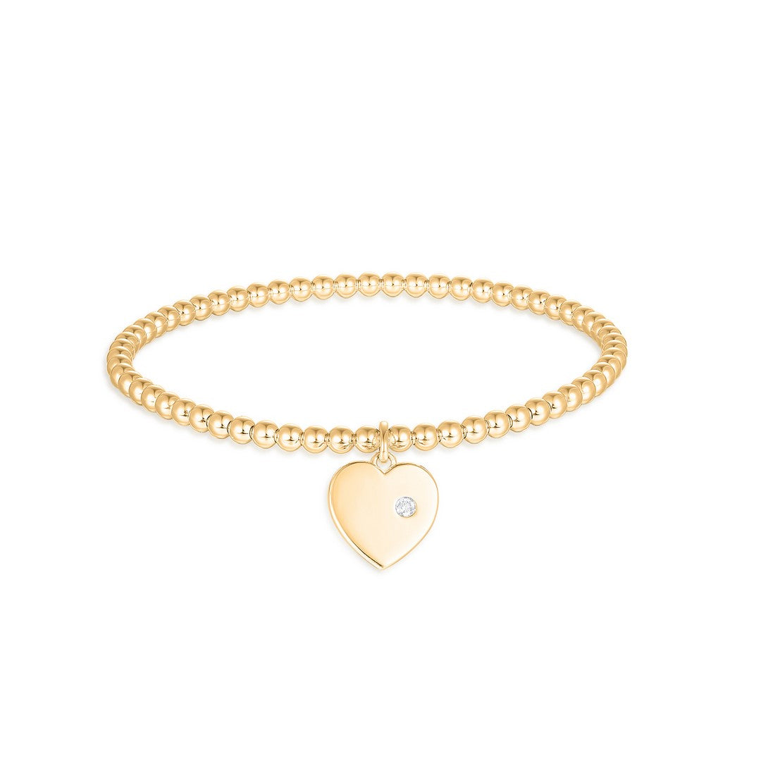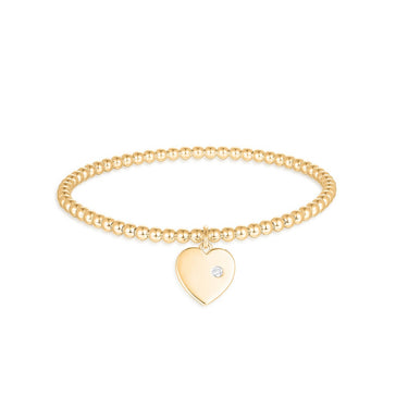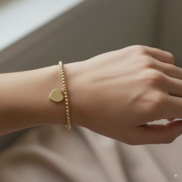 Delicate and full of charm, the Beaded Heart 14K (or 18K upon request) Charm Diamond Accent Bracelet is the perfect expression of timeless elegance. Crafted from solid gold beads, this bracelet features a polished heart charm adorned with a brilliant diamond accent, symbolizing love and sophistication in every detail.