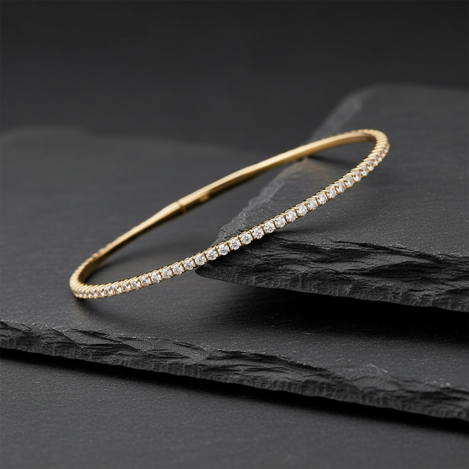 Classic Diamond 14K (or 18k upon request) Yellow Gold Eternity Bangle Bracelet