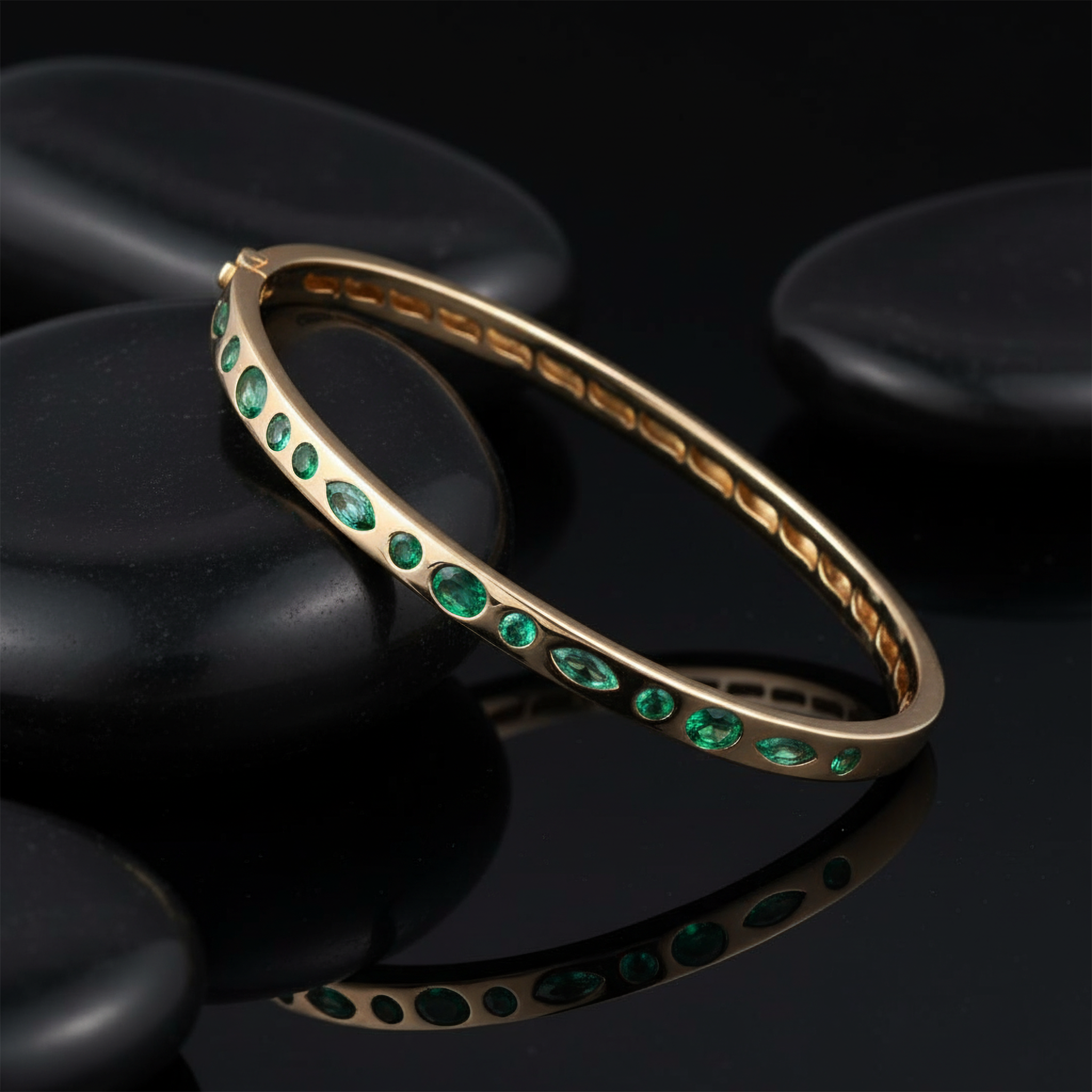 Dazzling Light 18K Yellow Gold Bangle Emerald Bracelet