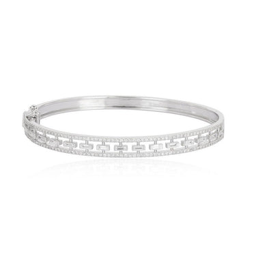 Diamond Link 14K (or 18k upon request) White Gold Pattern Bangle Bracelet