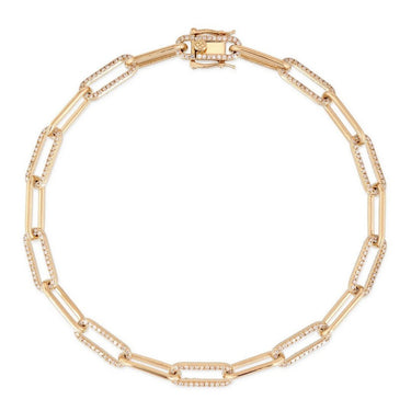Diamond Paperclip 14K (or 18k upon request) Yellow Gold Chain Bracelet