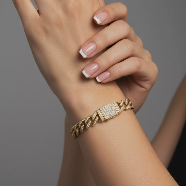 Diamond Studded 14K (or 18k upon request) Yellow Gold Cuban Chain Bracelet
