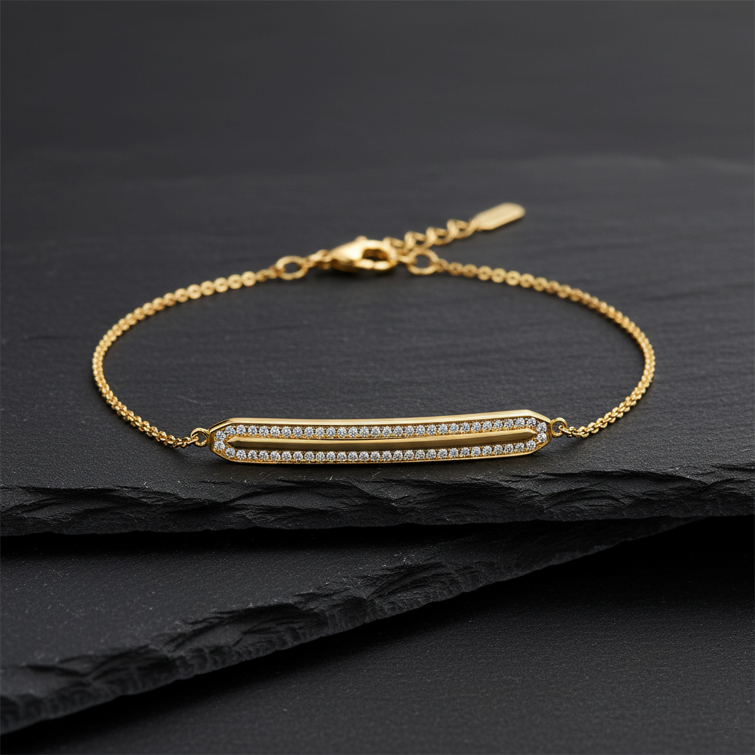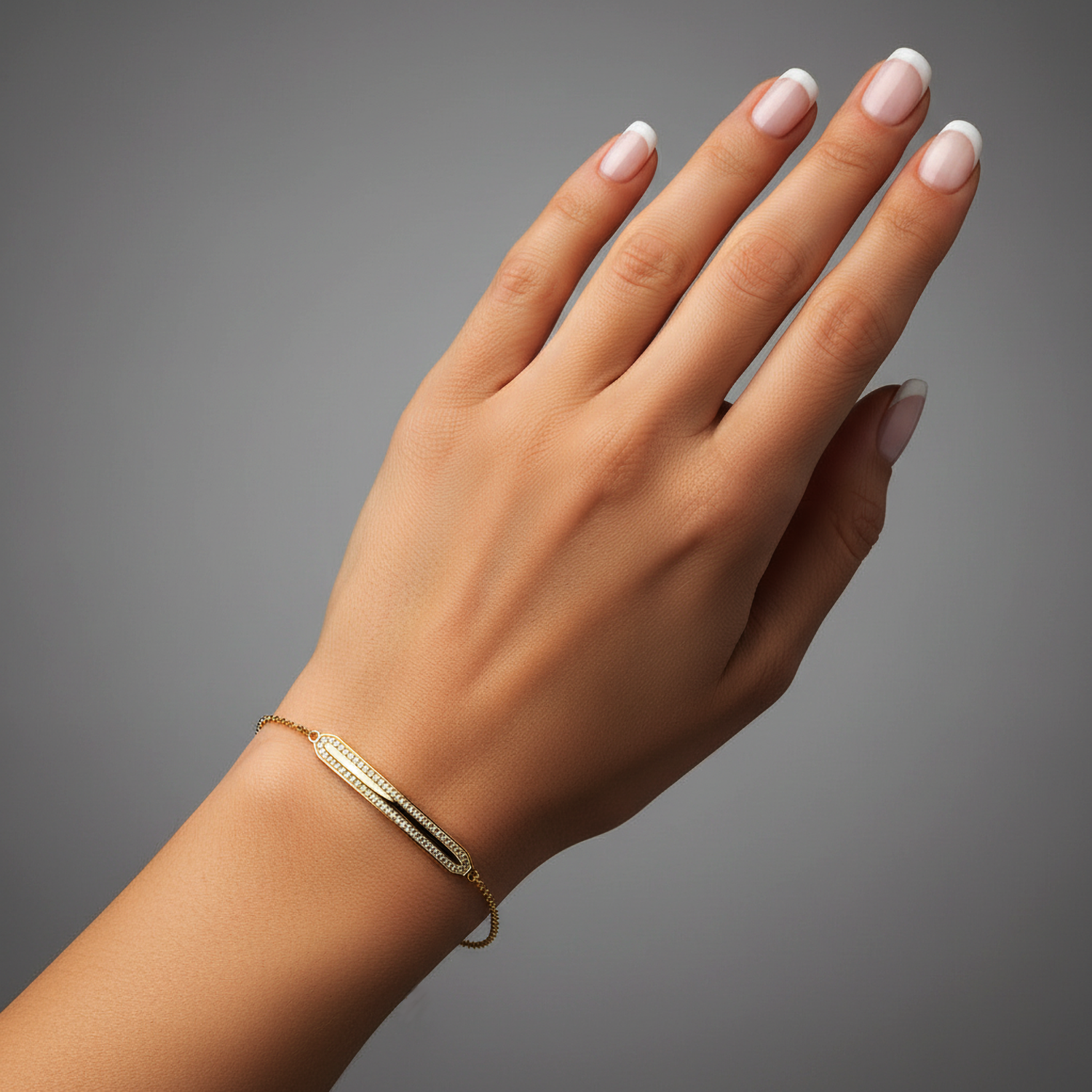 Double Line 14K (or 18k upon request) Yellow Gold Bar Diamond Bracelet