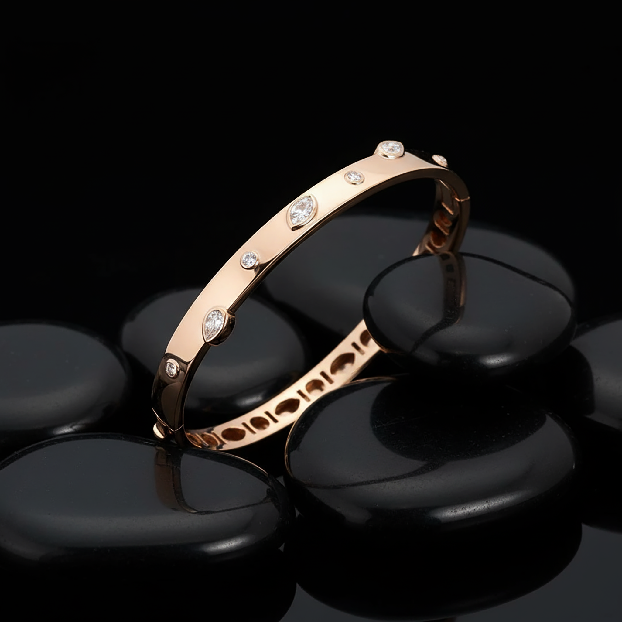 Eclipse Diamond 14K (or 18k upon request) Yellow Gold Bangle Bracelet