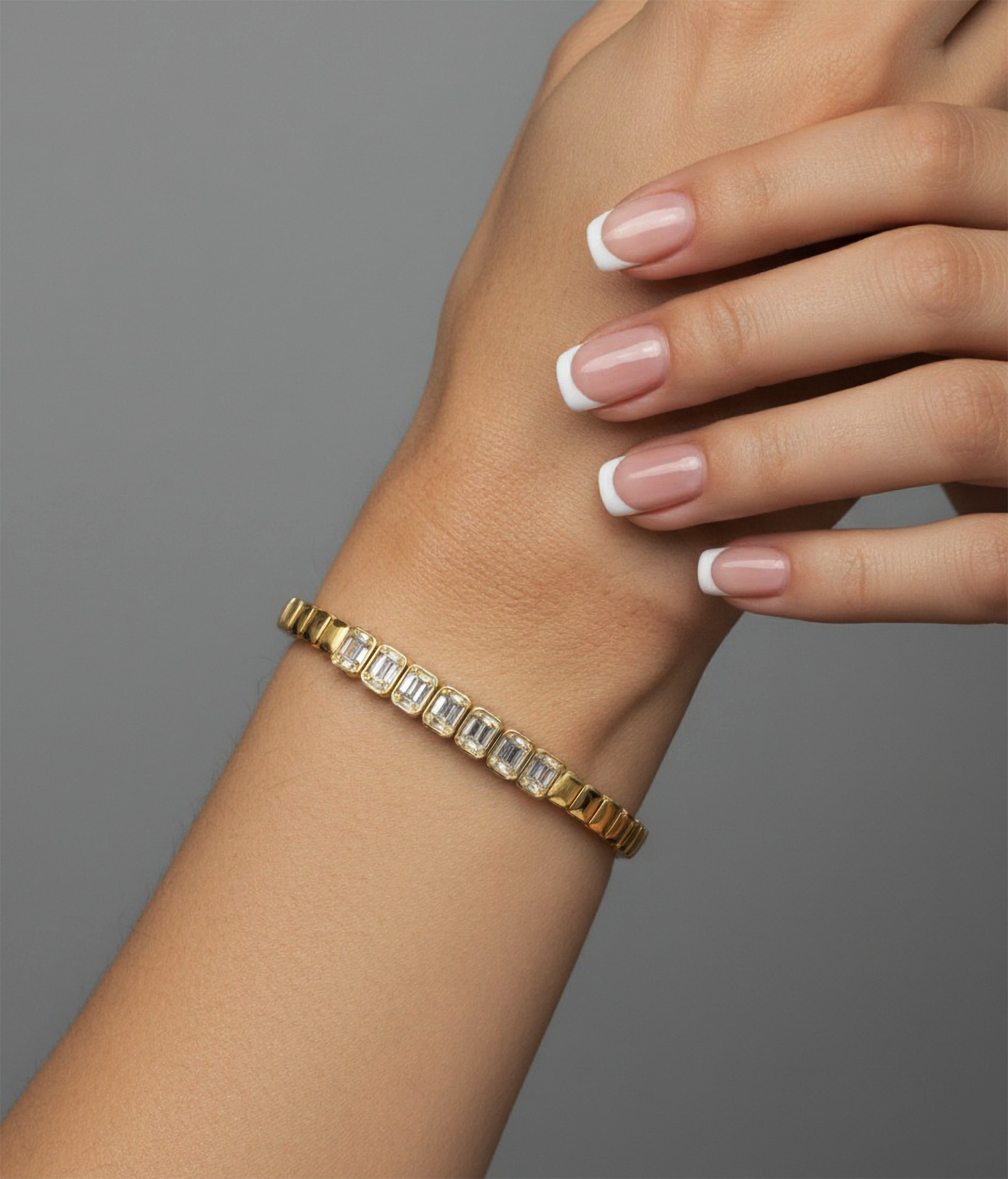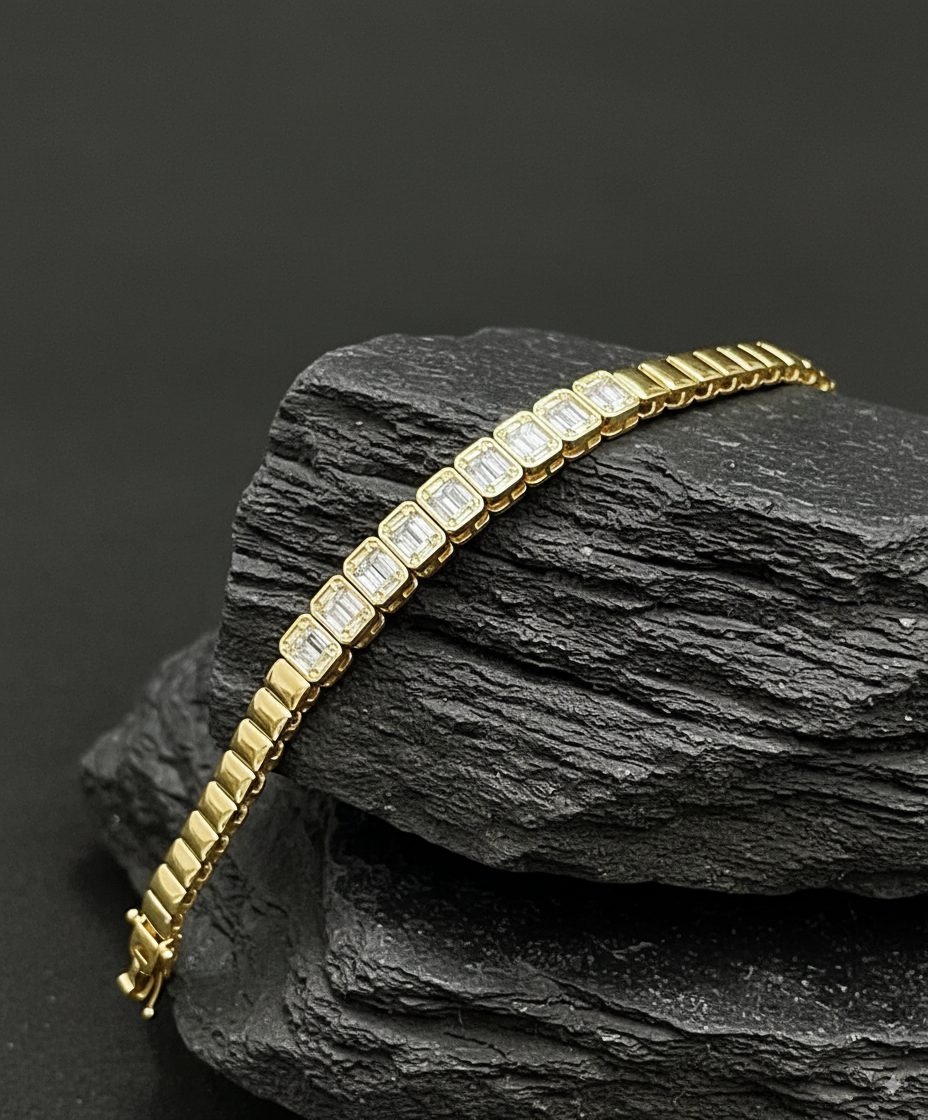 Emerald Cut Diamond 14K (or 18k upon request) Gold Bezel Tennis Bracelet