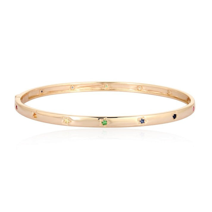 The Eternal Horizon 14K Yellow Gold Diamond Bracelet is a stunning fusion of natural diamonds and multi-colored sapphires, totaling 0.22 carats, set in luxurious 14K yellow gold. Its unique design blends the brilliance of diamonds with the vibrant hues of sapphires, creating an eye-catching and elegant piece. Perfect for adding a splash of color and sophistication to any occasion, this bracelet is a timeless addition to your jewelry collection.