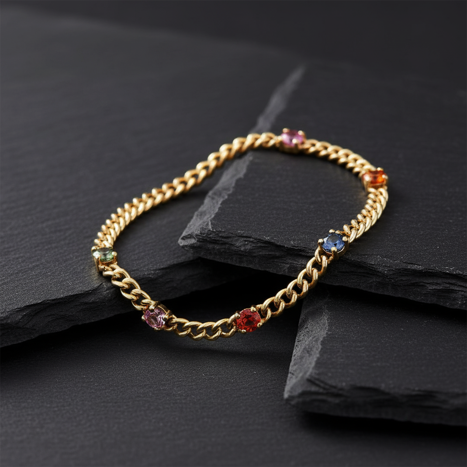 This 14K yellow gold bracelet features natural diamonds and vibrant multi-colored sapphires (1.52CT). With a size of 7 inches, it offers a harmonious blend of elegance and color, making it a stunning accessory for any occasion.