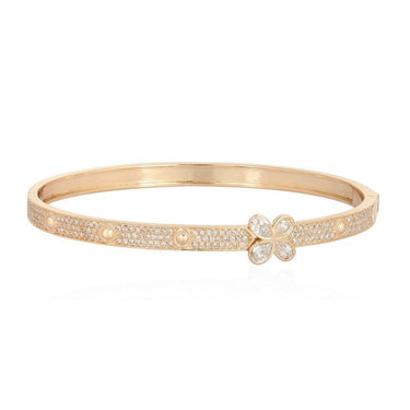 Floral Diamond 14K (or 18k upon request) Yellow Gold Pave Detailing Bangle Bracelet