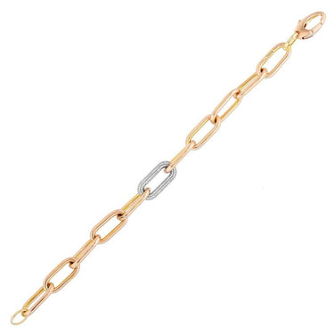 This exquisite 14K rose gold bracelet features natural diamonds (0.44CT) in a graceful link design. Weighing 11.7 grams, it blends elegance and sophistication, making it a timeless statement piece for any occasion.