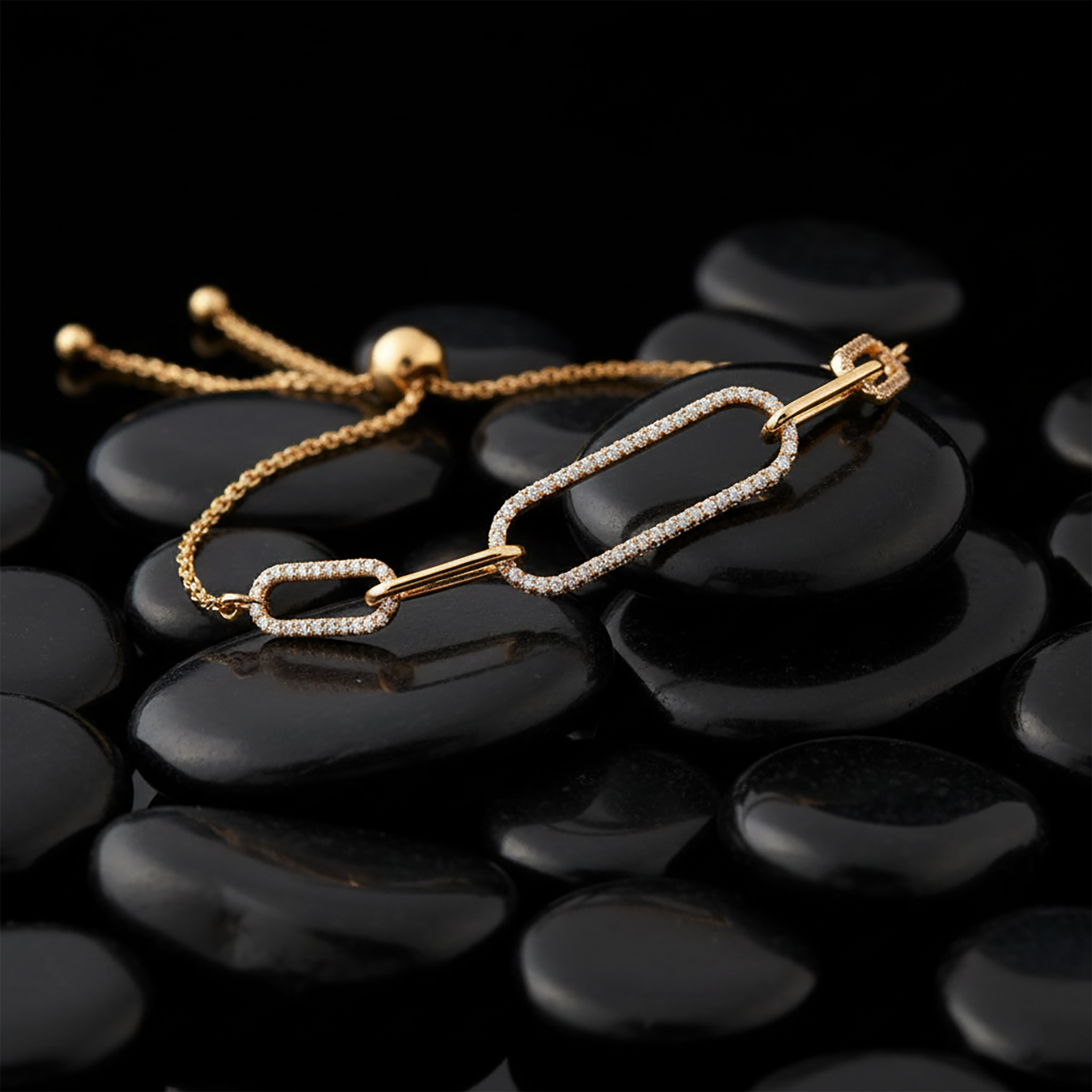 Link Luxe 14K (or 18k upon request) Yellow Gold Pave Paperclip Adjustable Bracelet