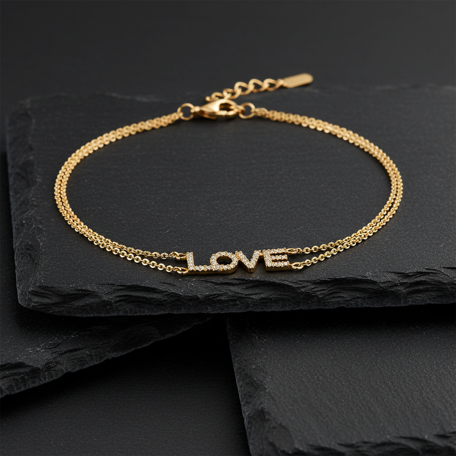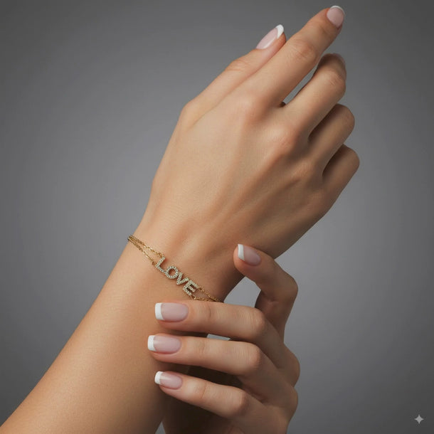 Celebrate your love story with this elegant 14k Diamond "LOVE" Bracelet, designed to add a touch of sparkle to your wrist. Crafted with natural diamonds and available in luxurious 14k gold options—rose, yellow, or white—this bracelet captures timeless elegance. Its delicate design is perfect for both daily wear and special occasions, making it a meaningful gift or a personal keepsake.