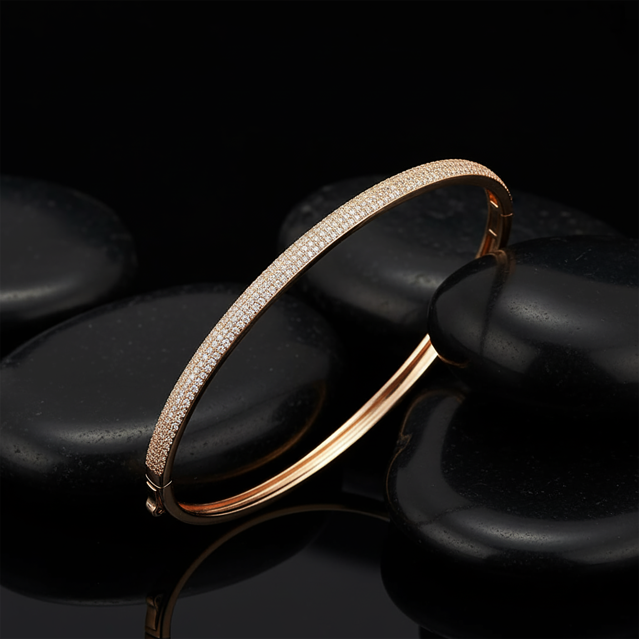 Micro Pave 14K (or 18k upon request) Yellow Gold Diamond Oval Bangle Bracelet