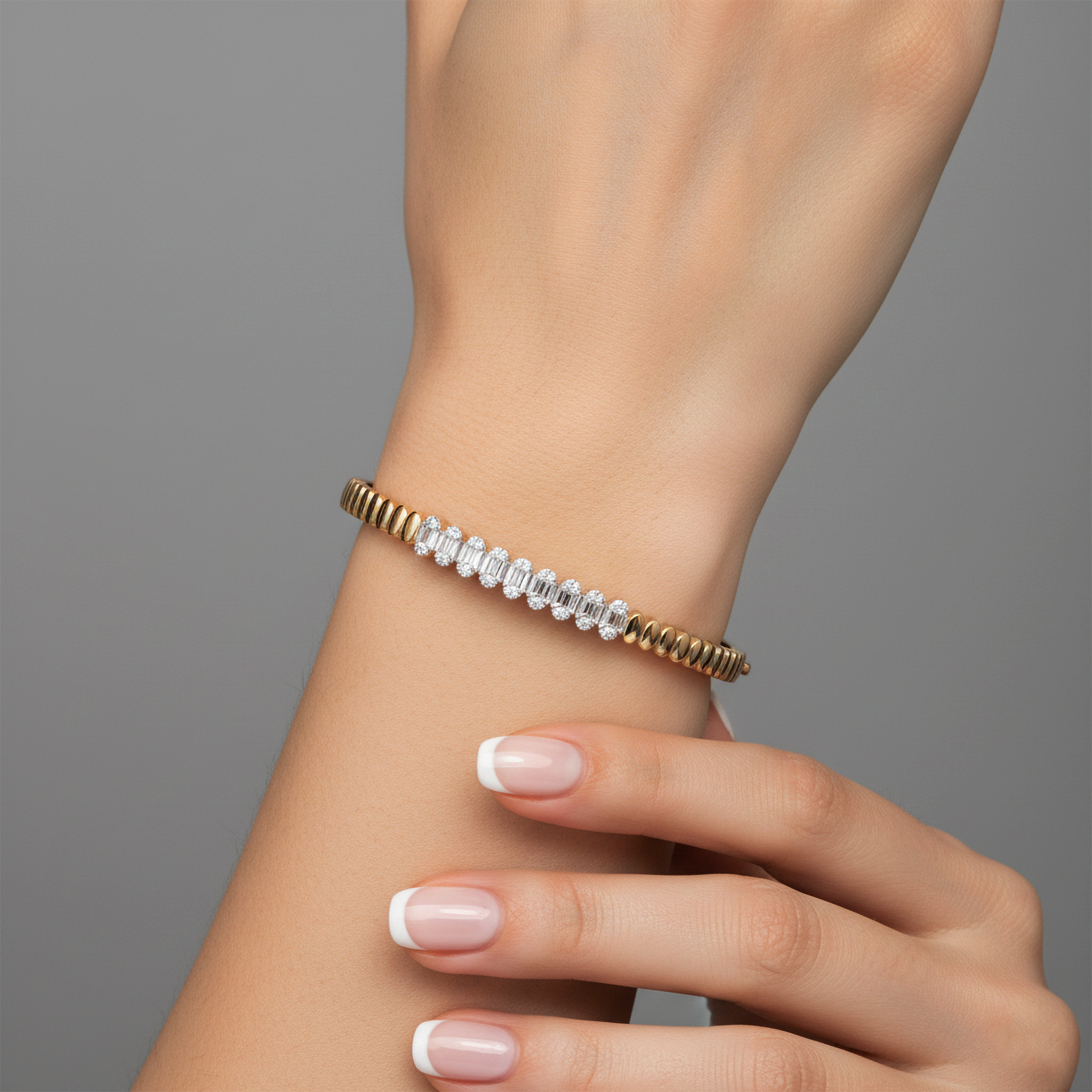 Opulent Line 14K (or 18k upon request) Yellow Gold Diamond Accent Ridge Bracelet