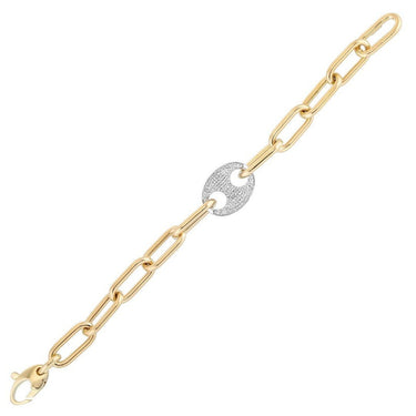 Oval Connector Pave Diamond 14K (or 18k upon request) Gold Link Bracelet