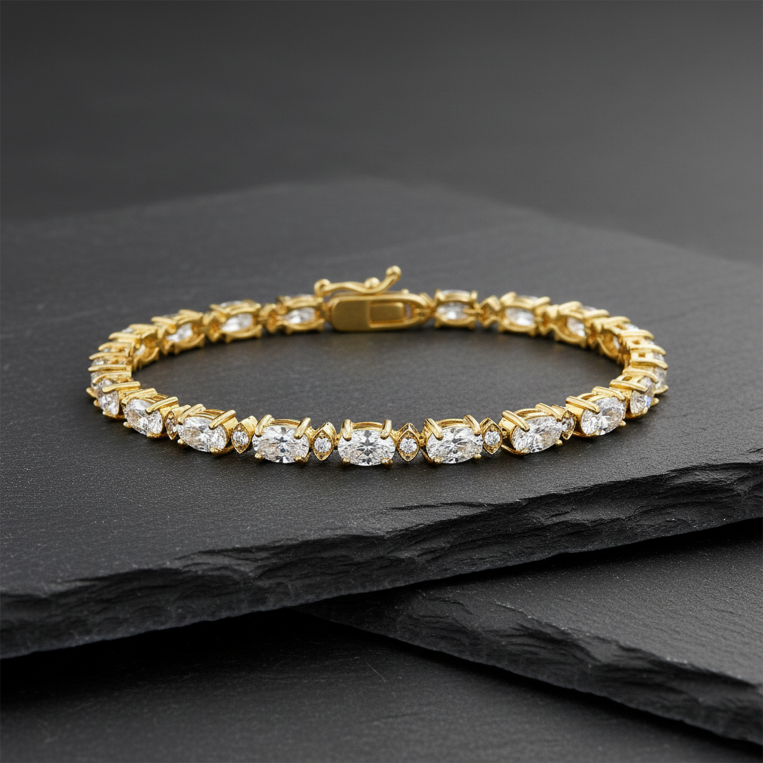 Oval Cut Diamond 14K (or 18k upon request) Gold Tennis Bracelet