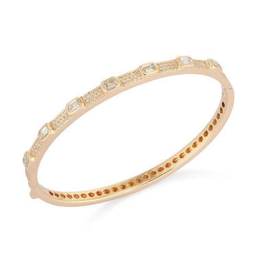 Pave Diamond 14K (or 18k upon request) Gold Baguette Bangle Bracelet