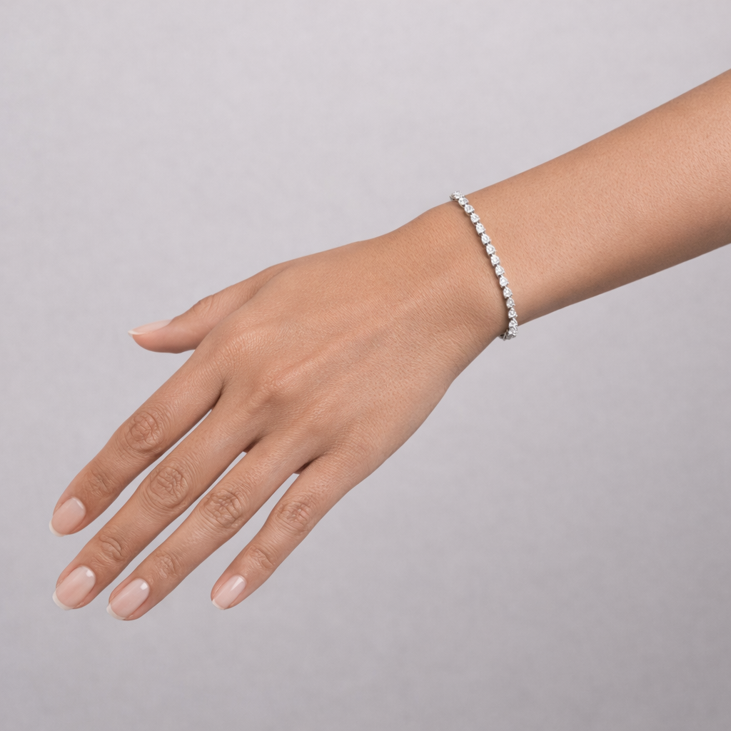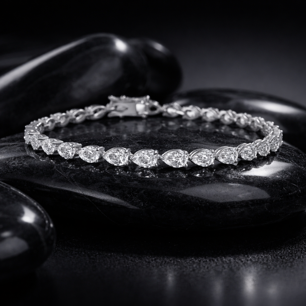 Pear Shaped Diamond 18K White Gold Tennis Bracelet, featuring exquisite pear-shaped natural diamonds. Designed to add a touch of elegance to any occasion, it embodies both luxury and timeless beauty. The perfect combination of VS-SI clarity diamonds and white gold ensures a sophisticated sparkle that will never go unnoticed.