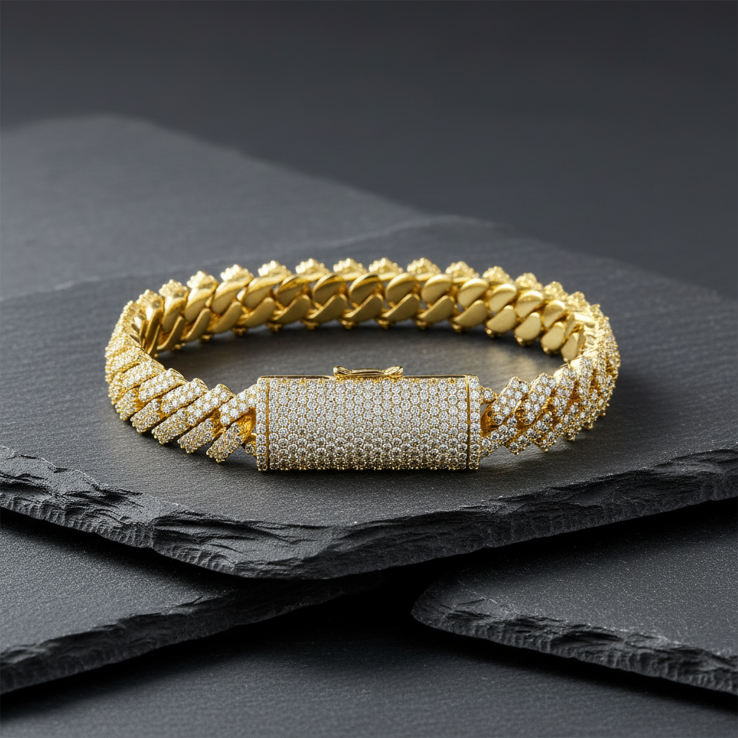 This Round Cut Diamond 14K Yellow Gold Cuban Bracelet is a statement of elegance and timeless style. Adorned with brilliant round-cut diamonds, it offers a captivating sparkle that complements any look. Crafted with meticulous attention to detail, this bracelet combines opulence and durability, making it the perfect accessory for those who appreciate fine craftsmanship.