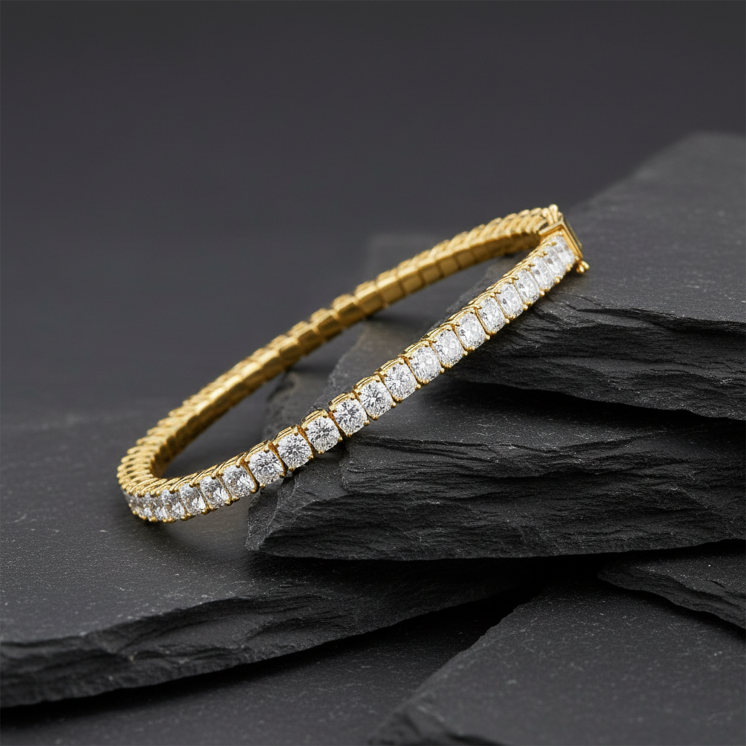 Crafted with elegance, this Round Cut Push Back Diamond 18K Gold Stud Bracelet is a timeless addition to any jewelry collection. Featuring radiant cut, conflict-free diamonds, its sparkle brings a touch of luxury to both everyday wear and special occasions. Available in white, yellow, and rose gold, this piece exudes sophistication and style.
