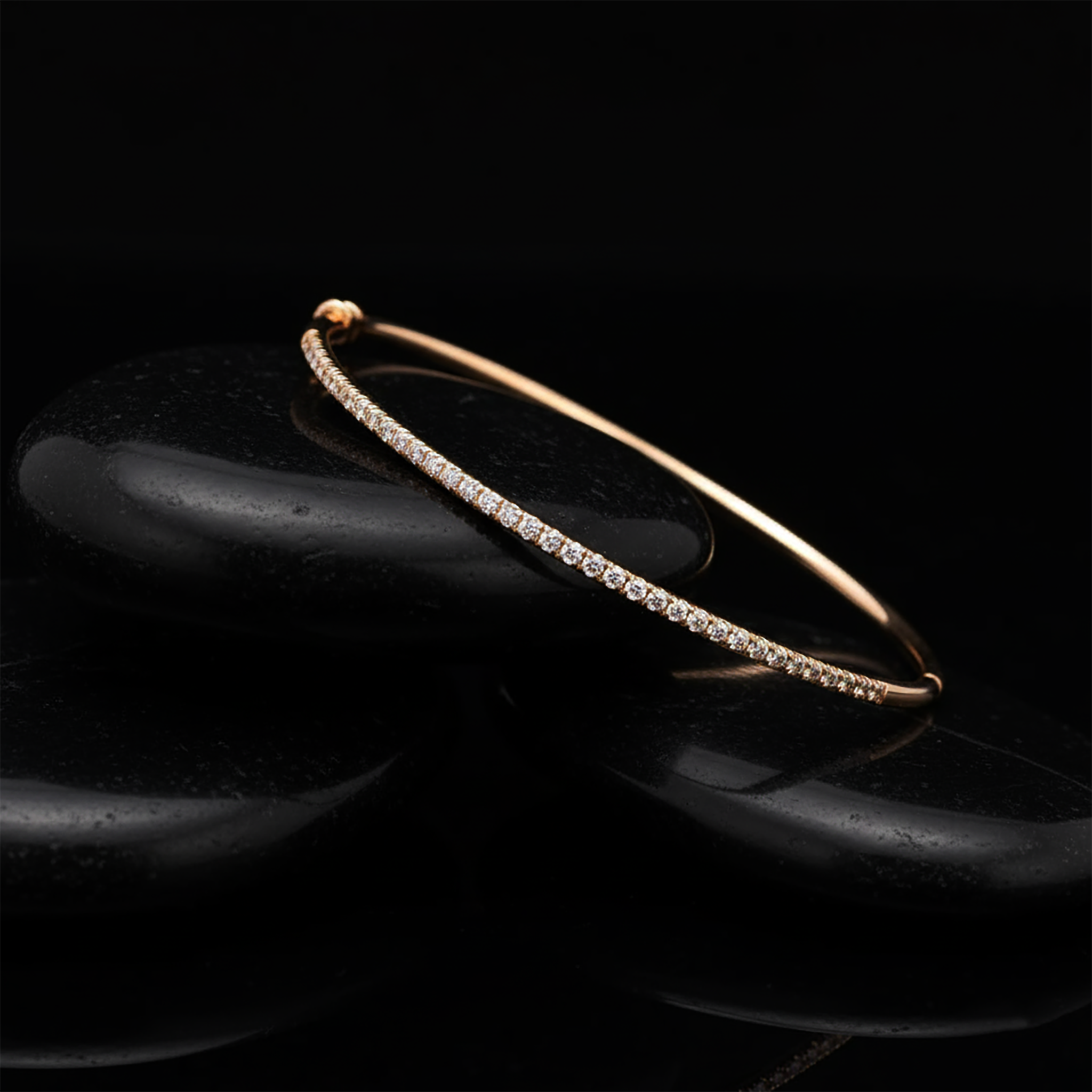 Round Diamond 14K (or 18k upon request) Gold Petite Micro Pave Bangle Bracelet