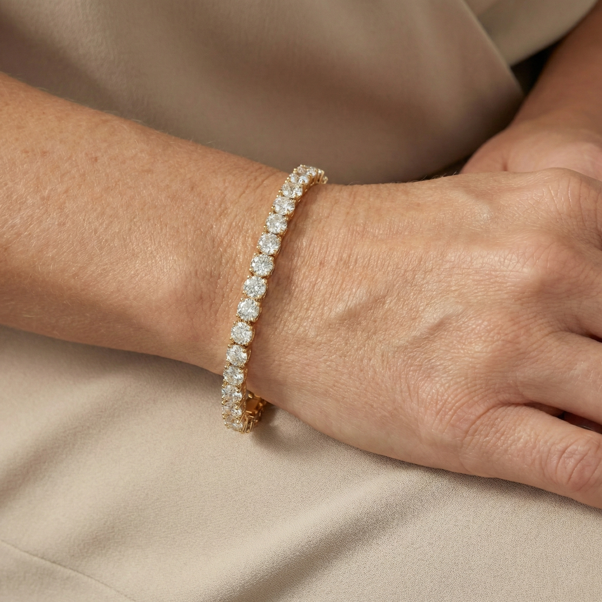 Signature Round Diamond 14K (or 18k upon request) Yellow Gold Tennis Bracelet