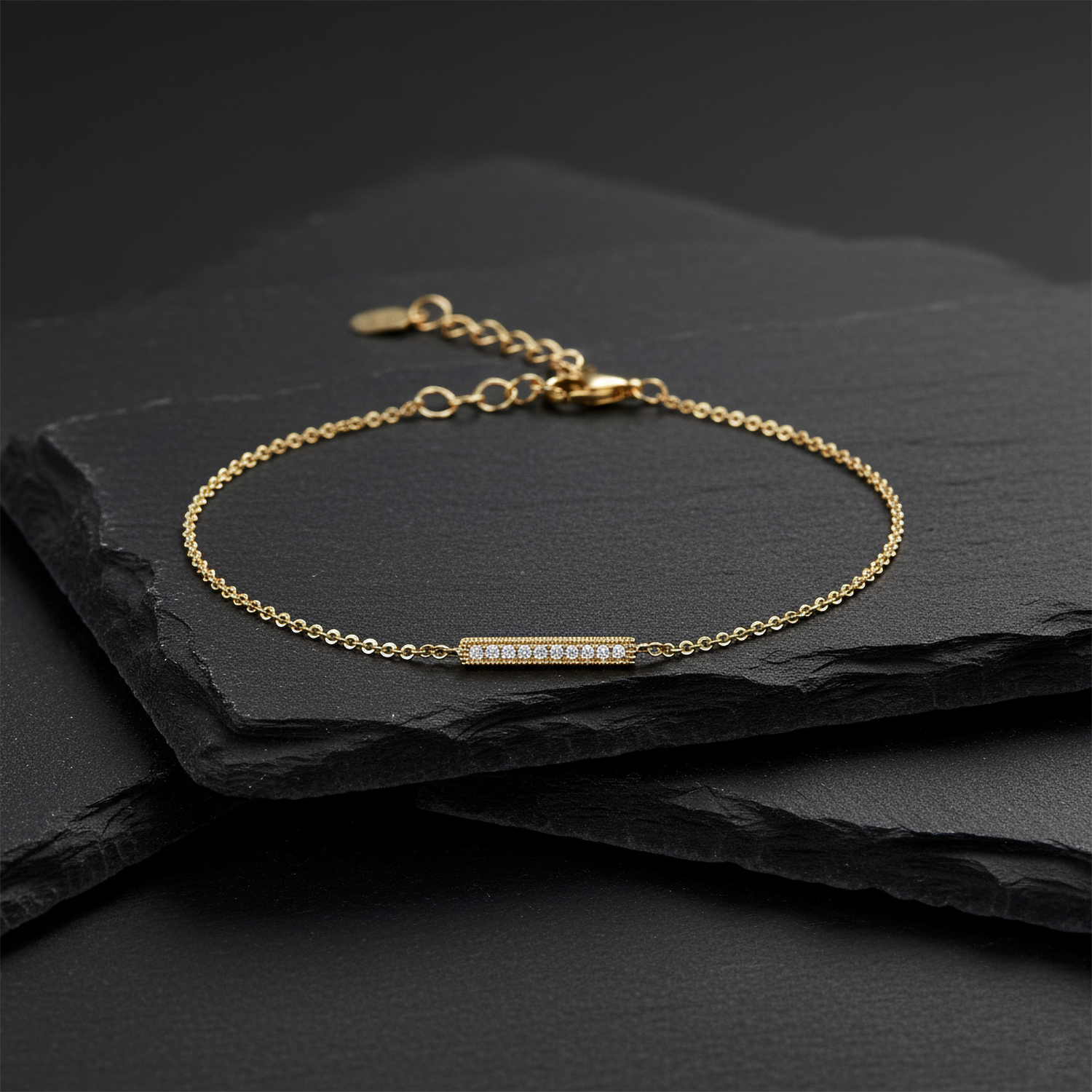 Tiny Dots Bar 14K (or 18k upon request) Gold Diamond Bracelet