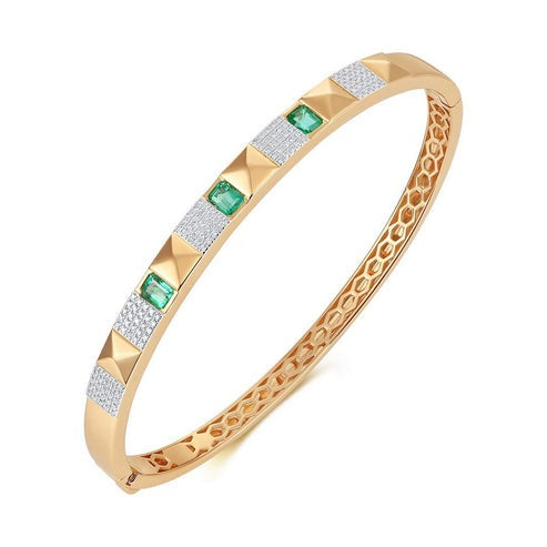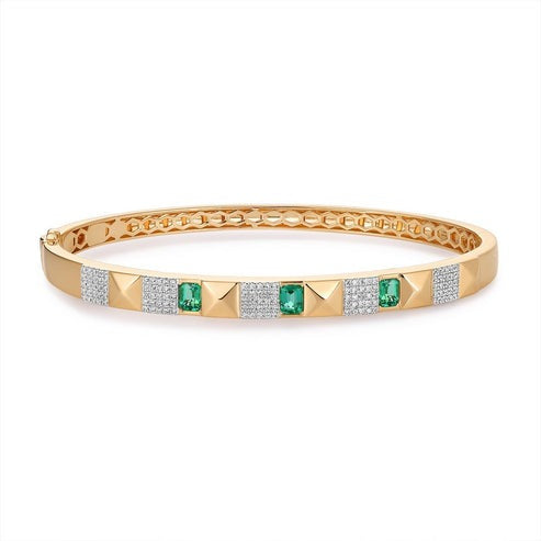 The Whisper Bangle 14K Yellow Gold Diamond Bracelet is crafted with natural diamonds, set in 14K gold. With a choice of yellow or rose gold, it offers a timeless appeal. The bracelet weighs 6 grams and features 0.50 carats of full-cut diamonds. Its delicate design radiates elegance, making it an ideal addition to any collection. Perfect for those who appreciate understated luxury.