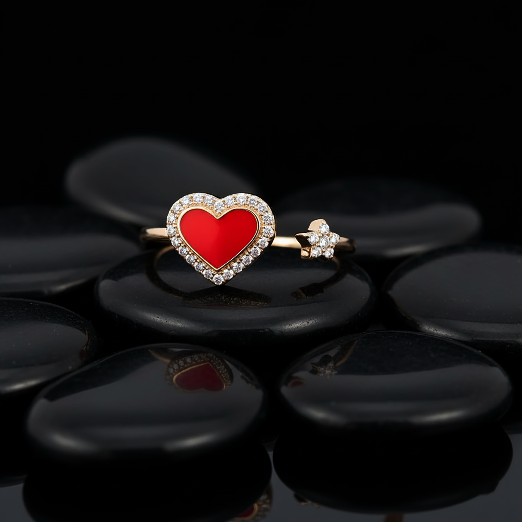 The Diamond Studded Heart 14K Yellow Gold Open Wrap Ring is a romantic and elegant design, perfect for expressing love and luxury. Crafted in 14K yellow gold, this ring features a graceful open wrap design, with a heart shape adorned with 0.07 carats of natural diamonds. The diamonds add a soft, radiant sparkle that enhances the ring’s charm. A perfect choice for a special occasion, this ring combines timeless romance with modern sophistication.