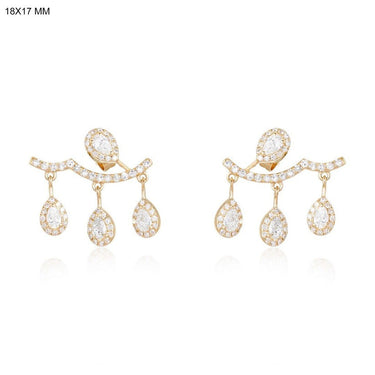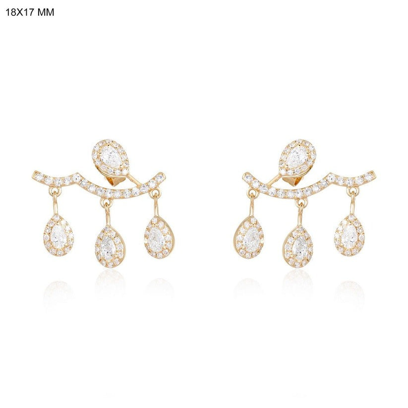 Pear Diamond 14K (or 18k upon request) Yellow Gold Curved Drop Stud Earrings