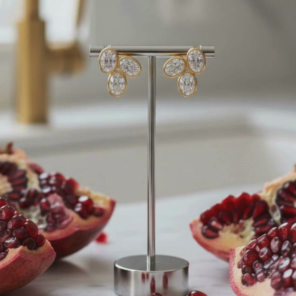 Triple Oval 18K Yellow Gold Cluster Stud Earrings