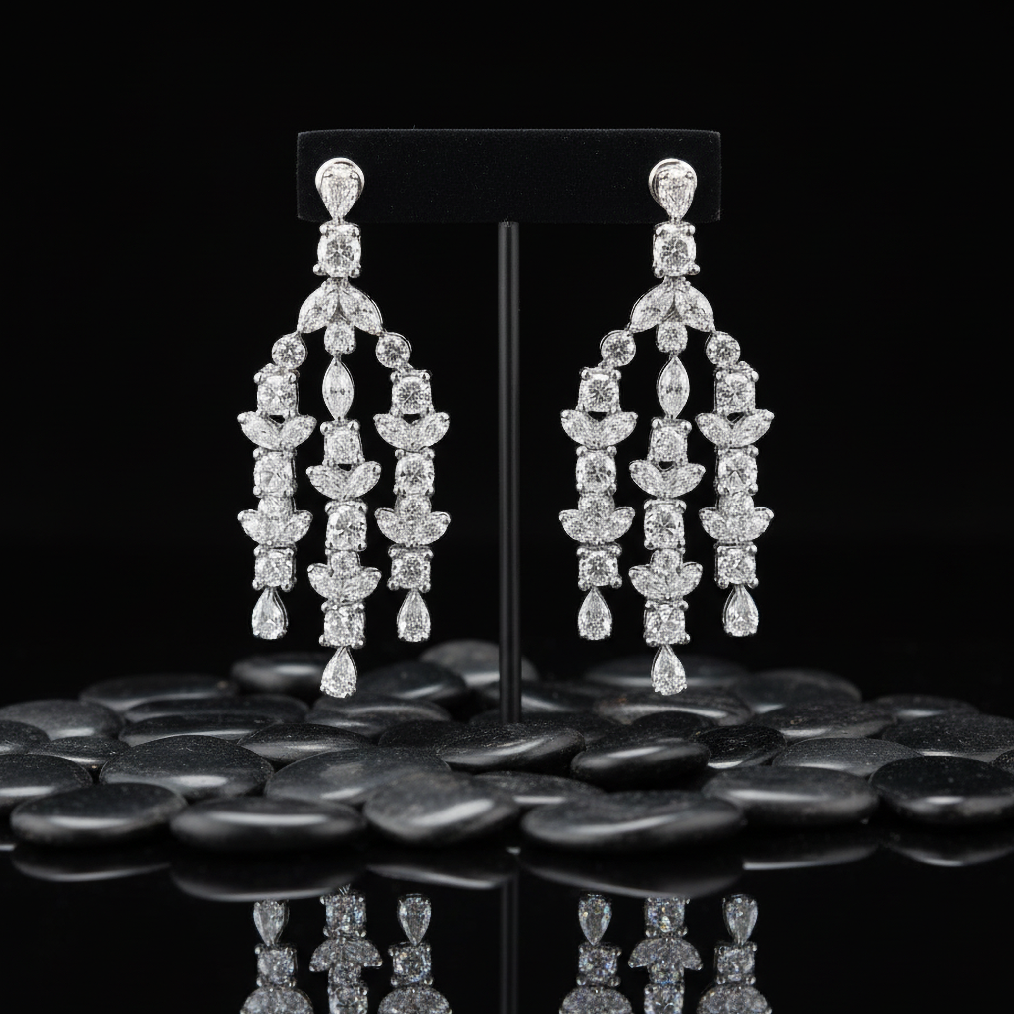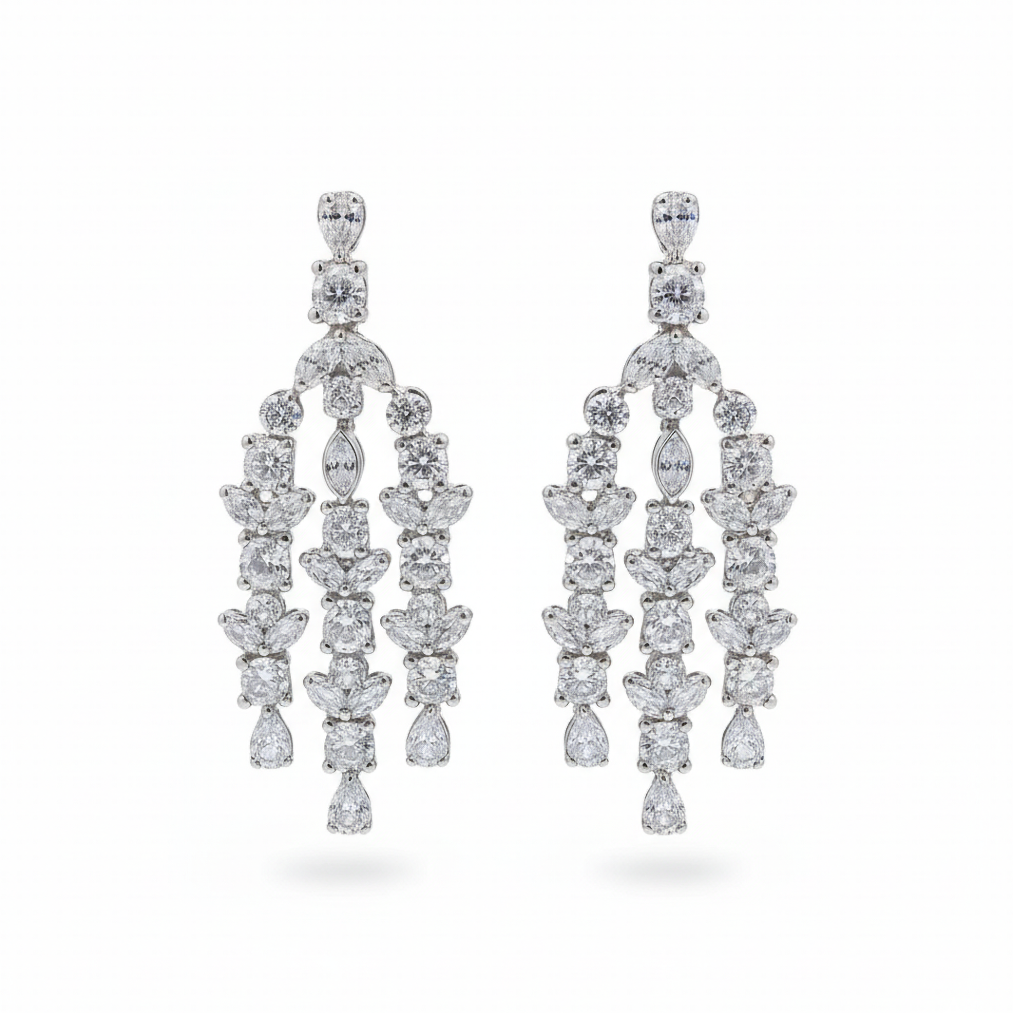Add a touch of luxury and elegance with these exquisite Cascade Diamond Drop Earrings. Expertly crafted in 18K white gold, this opulent pair features a dynamic blend of diamond cuts—including pear, emerald, round, and marquise—strategically arranged in cascading tiers for breathtaking sparkle. Each diamond is individually prong-set to maximize brilliance and movement.