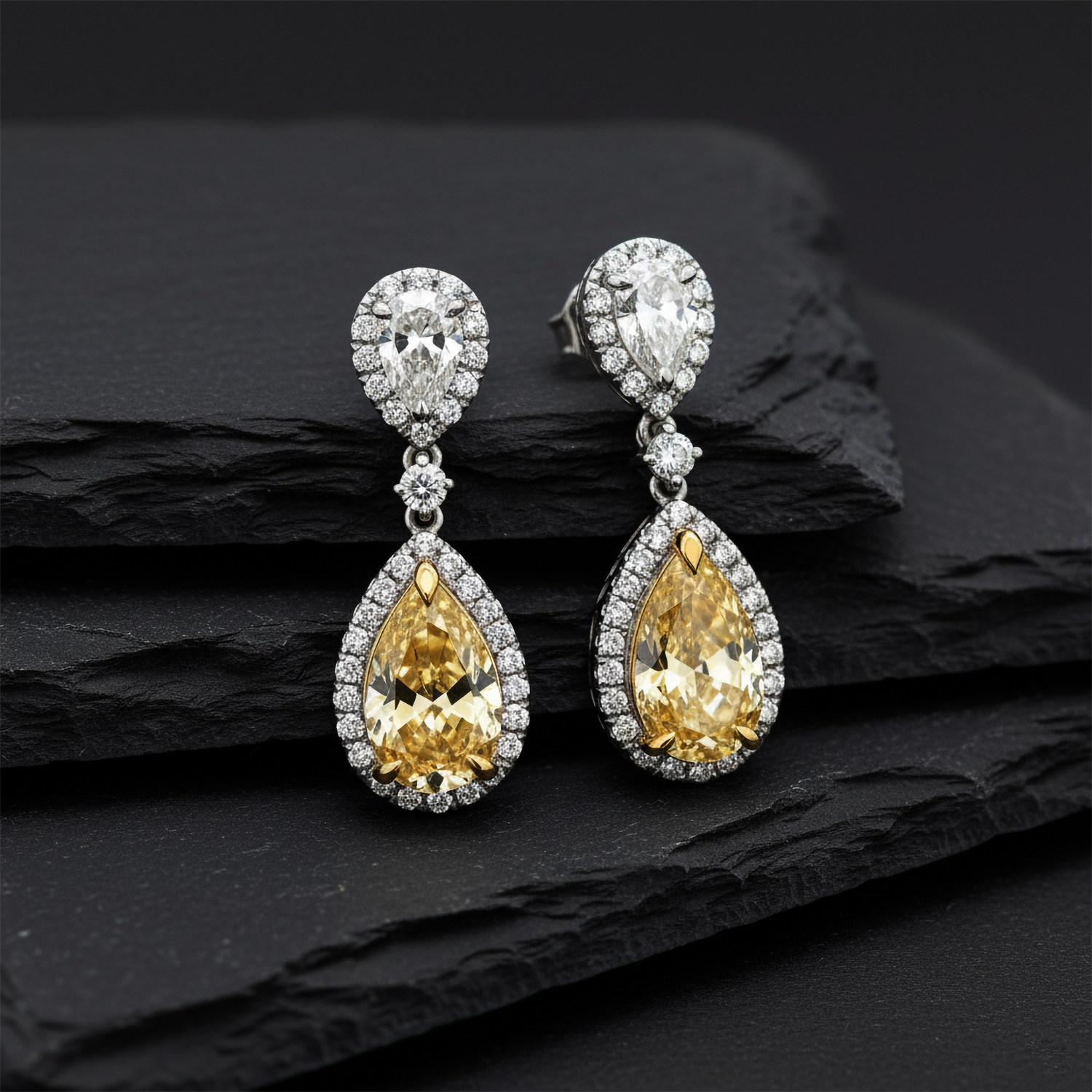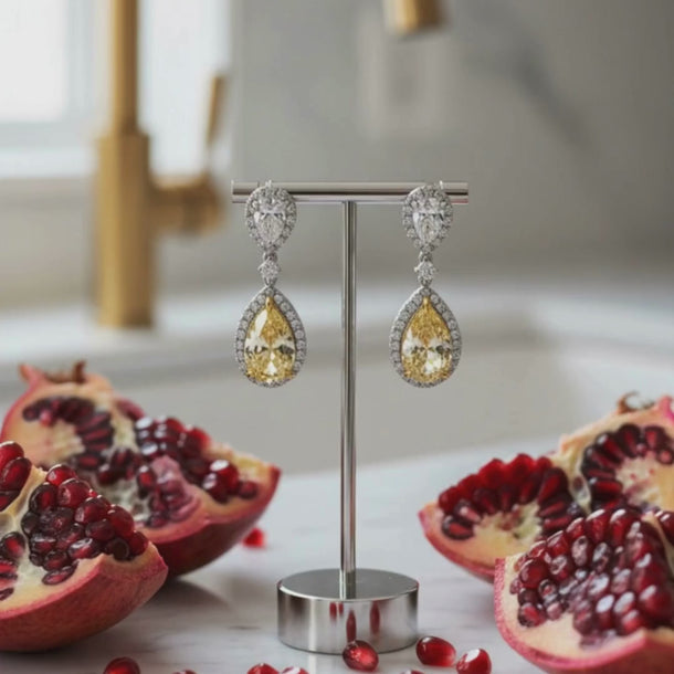 Pear Shaped 14K (or 18k upon request) Drop Diamond Waterfall Earrings